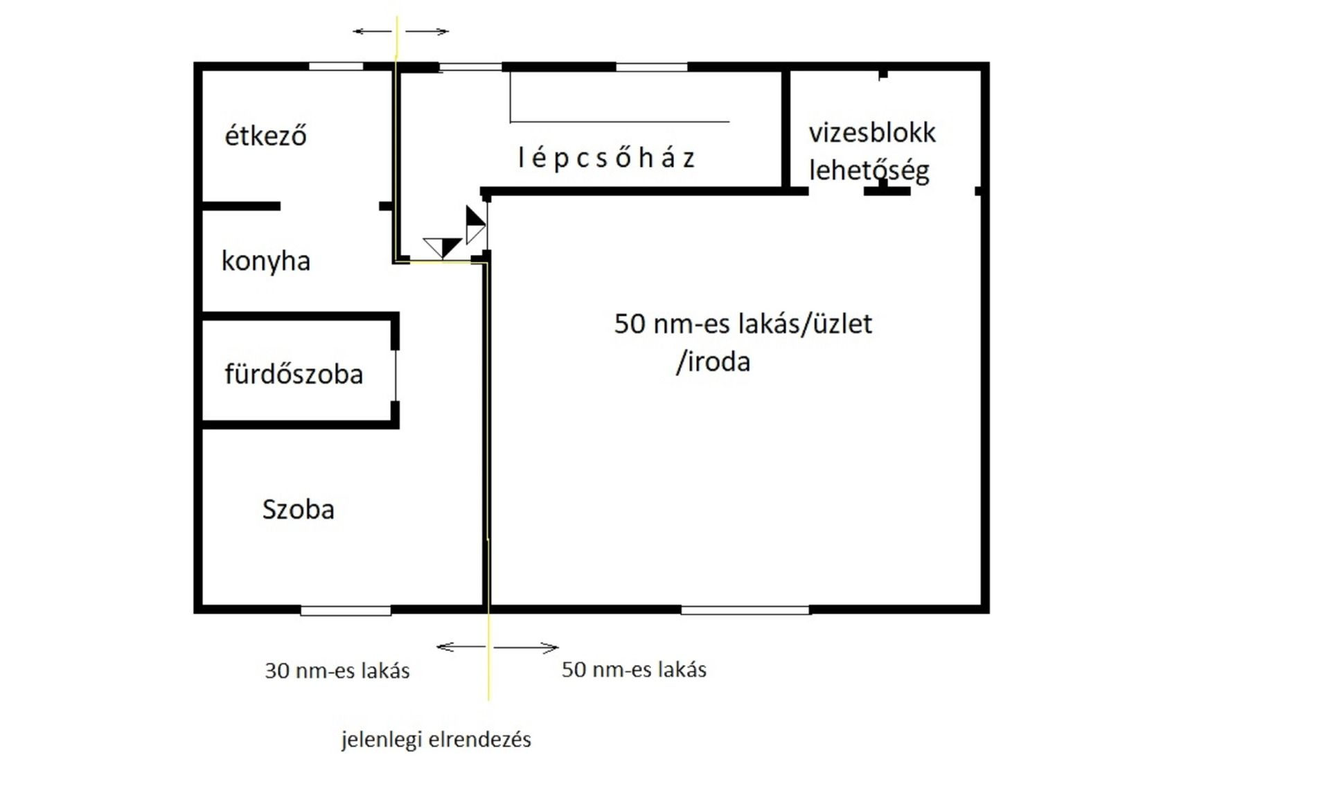 Több lehetőséget magában rejtő, br. 96 nm-es ingatlan eladó, mely jelenleg két részből áll, melyek akár külön is megvásárolhatók: