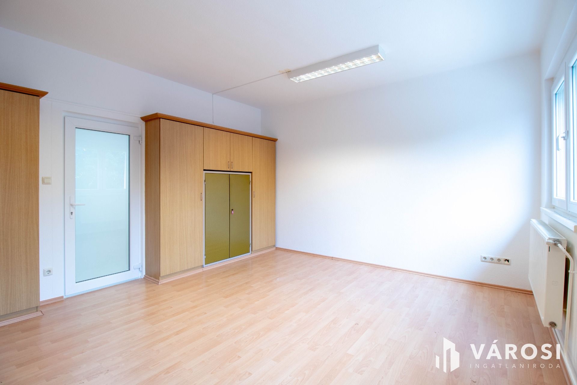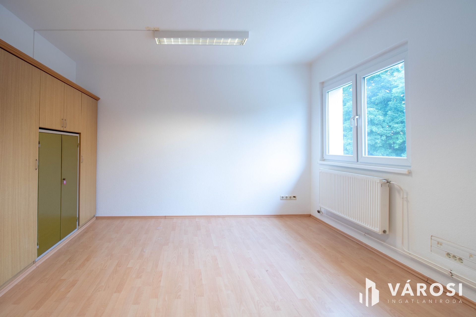 Az iroda világos, keleti tájolású, a fotókon látható módon részben berendezett.
