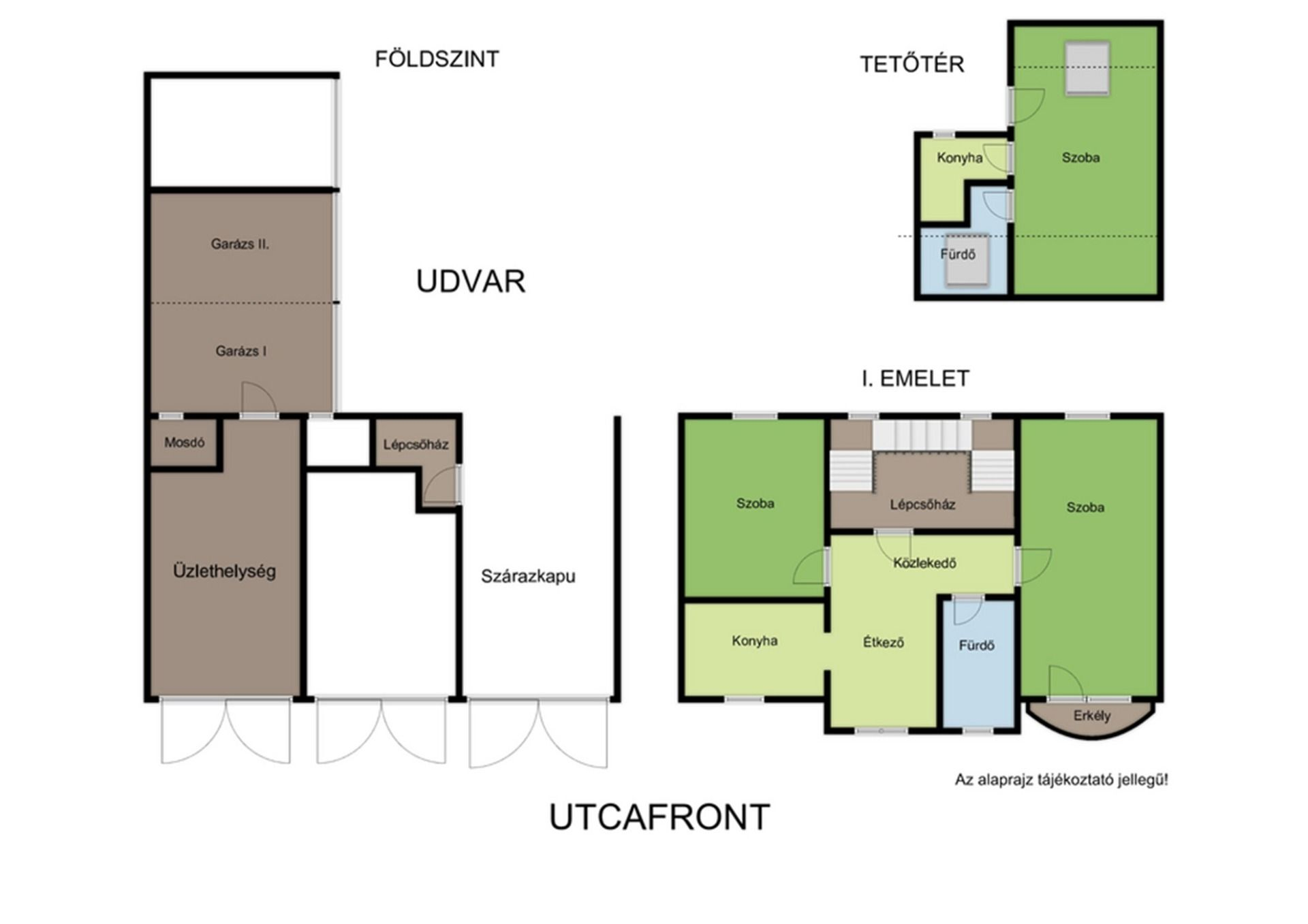 - valamint a tetőtérben található 20 m2-es konvektoros fűtéssel rendelkező garzont, alaprajz szerinti elrendezéssel, kádas fürdőszobával.