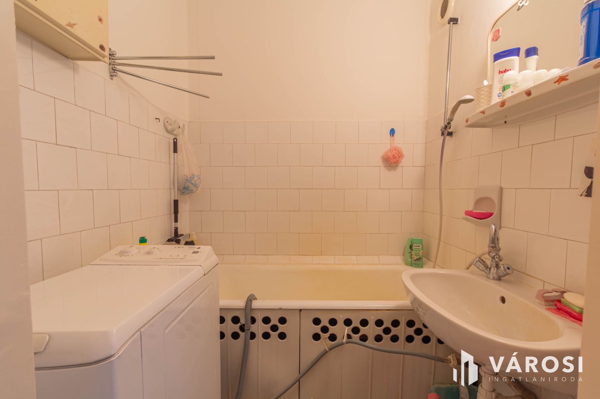 A lakás egyik különlegessége, hogy a hall-ot képző fal nem került beépítésre, így egy tágas, nagy, igencsak napfényes nappalit kapunk, ahol kényelmesen elfér az étkező is. A folyosón beépített szekrény került kialakításra.