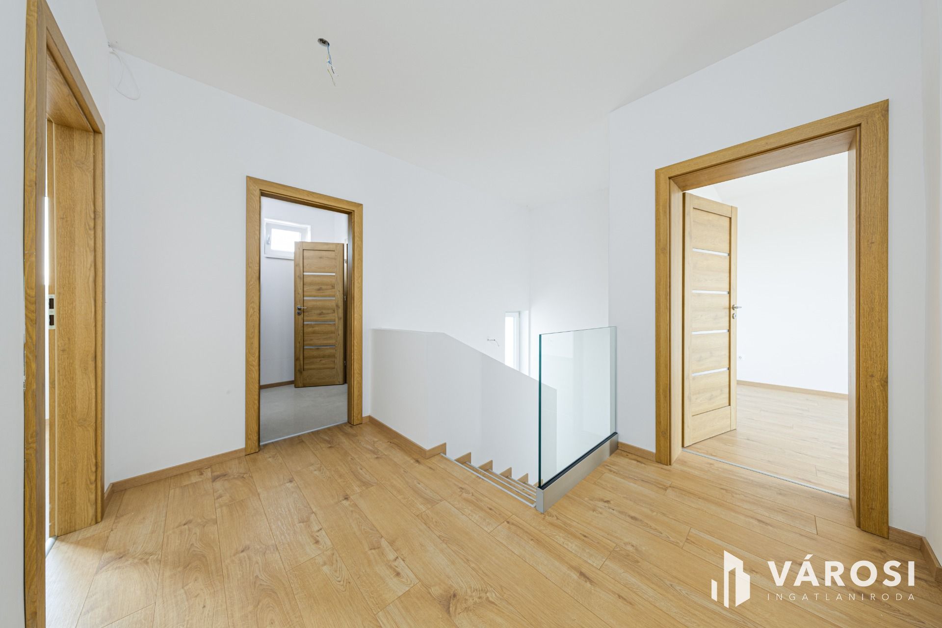 A kétszintes épületben 4 tágas szoba, egy világos amerikai konyhás nappali, valamint 2 fürdőszoba található az egyéb helyiségek mellett a melléklet alaprajz szerinti elrendezésben. A külön fürdő és WC biztosítják a család maximális kényelmét. Az ingatlant prémium anyagok felhasználásával építették, a tervezés során a jövőbeni lakók maximális komfortját tartották szem előtt..