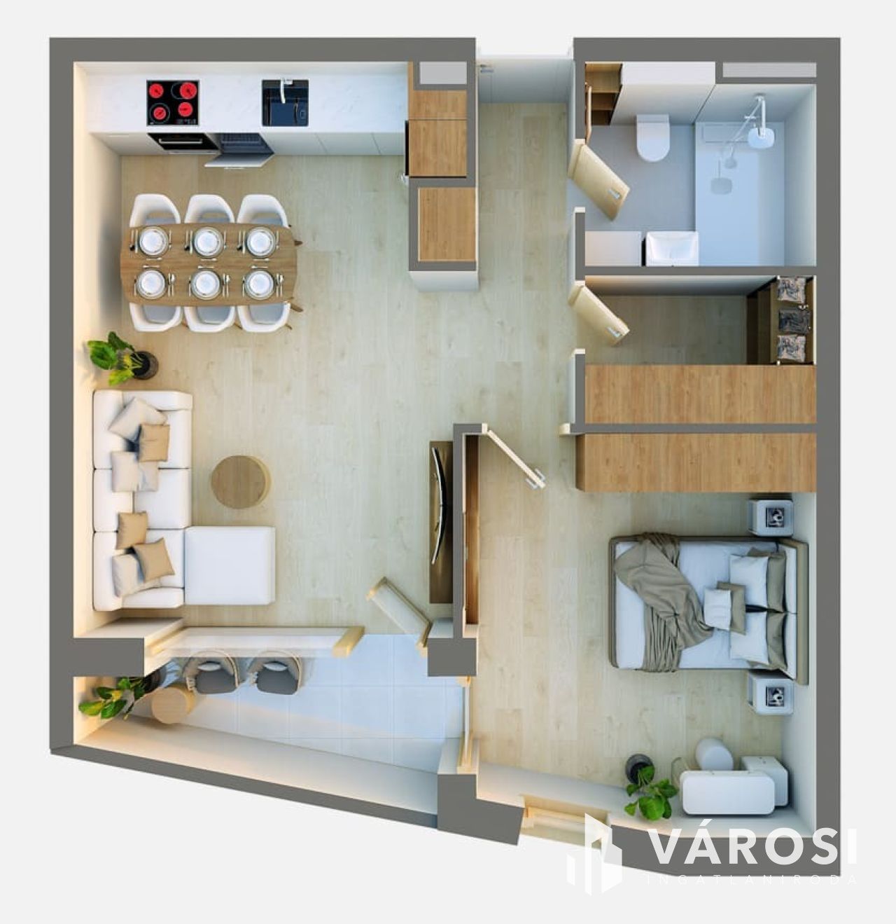 - Modern kialakítás: praktikusan tervezett terek, világos helyiségek – ideális egyedülállóknak, pároknak vagy kis családnak