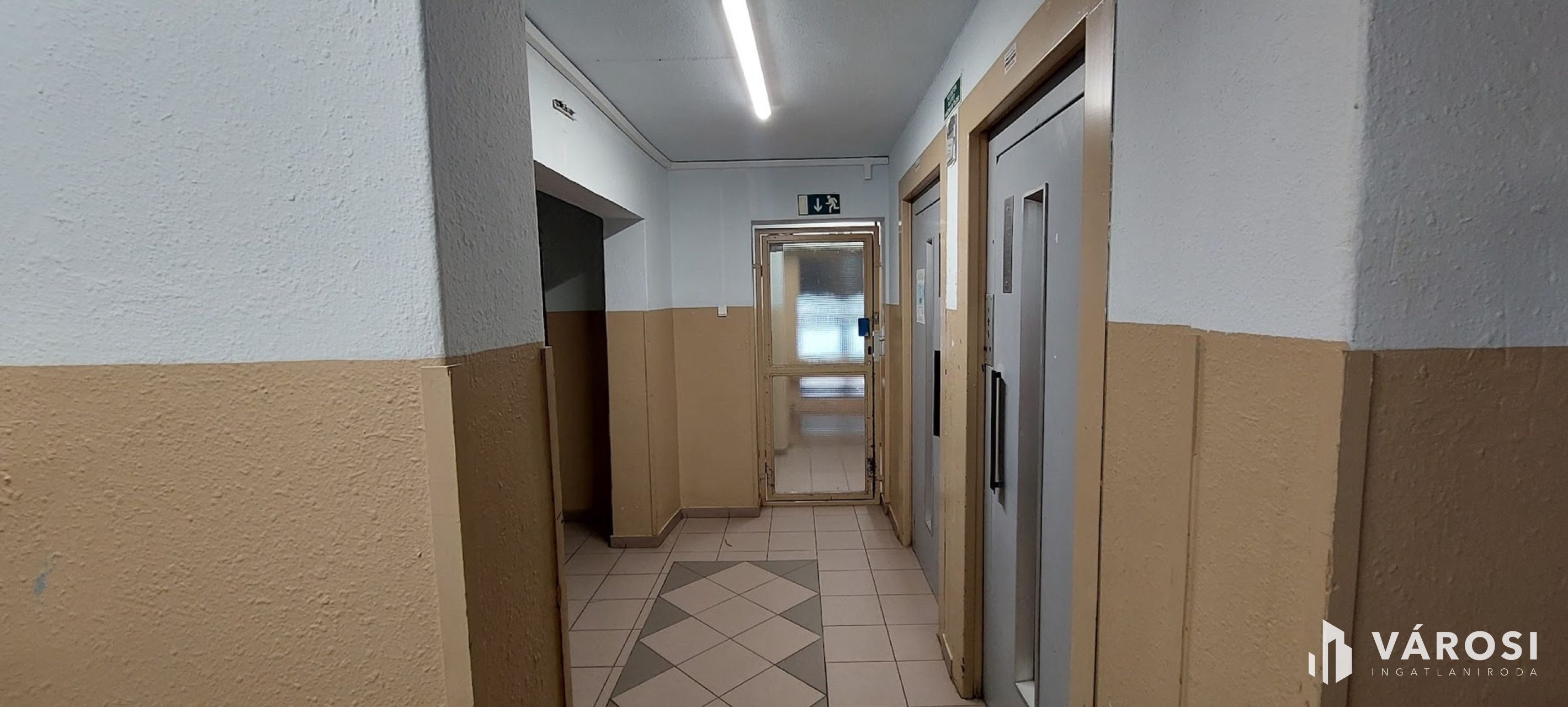 A lakás egy rendezett, két lifttel rendelkező 10 emeletes társasház 6. emeletén helyezkedik el. A lakás zárt folyosóról közelíthető meg, bejáratát Hi-Sec biztonsági ajtó védi.
