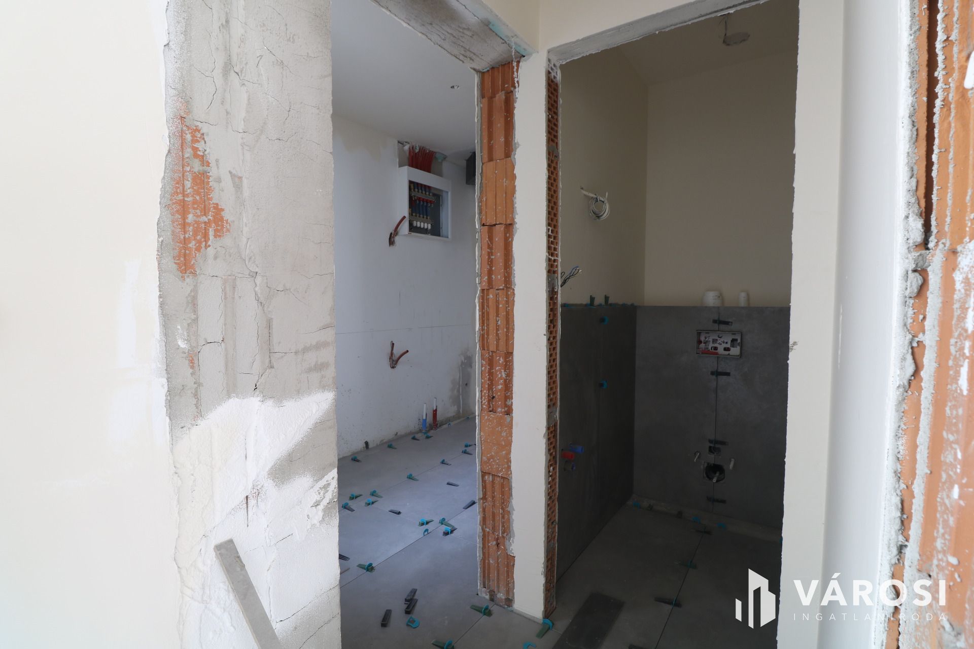 - Vizes helyiségek kiburkolva.