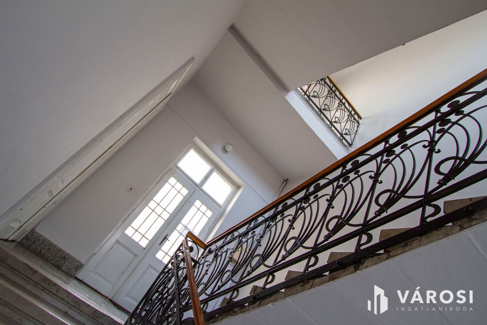 A lakás az épület második szintjén található, kilátással a belváros forgatagára, ugyanakkor mégis csendes, az utca zaja csak minimálisan hallatszik fel. Az ingatlan zárt lépcsőházból közelíthető meg, egy dupla szárnyas klasszikus nagypolgári ajtón keresztül. Az előszobán áthaladva egy tágas étkező-konyha együttesébe érkezünk, majd a dupla ablakos nappali nyújtotta kényelemben találjuk magunkat. A 3,85 m-es belmagasság egy praktikus 8 m2-es háló galéria létrehozását tette lehetővé. Fürdőkádas fürdőszoba és külön WC lett kialakítva a lakás teljes műszaki felújítása során.