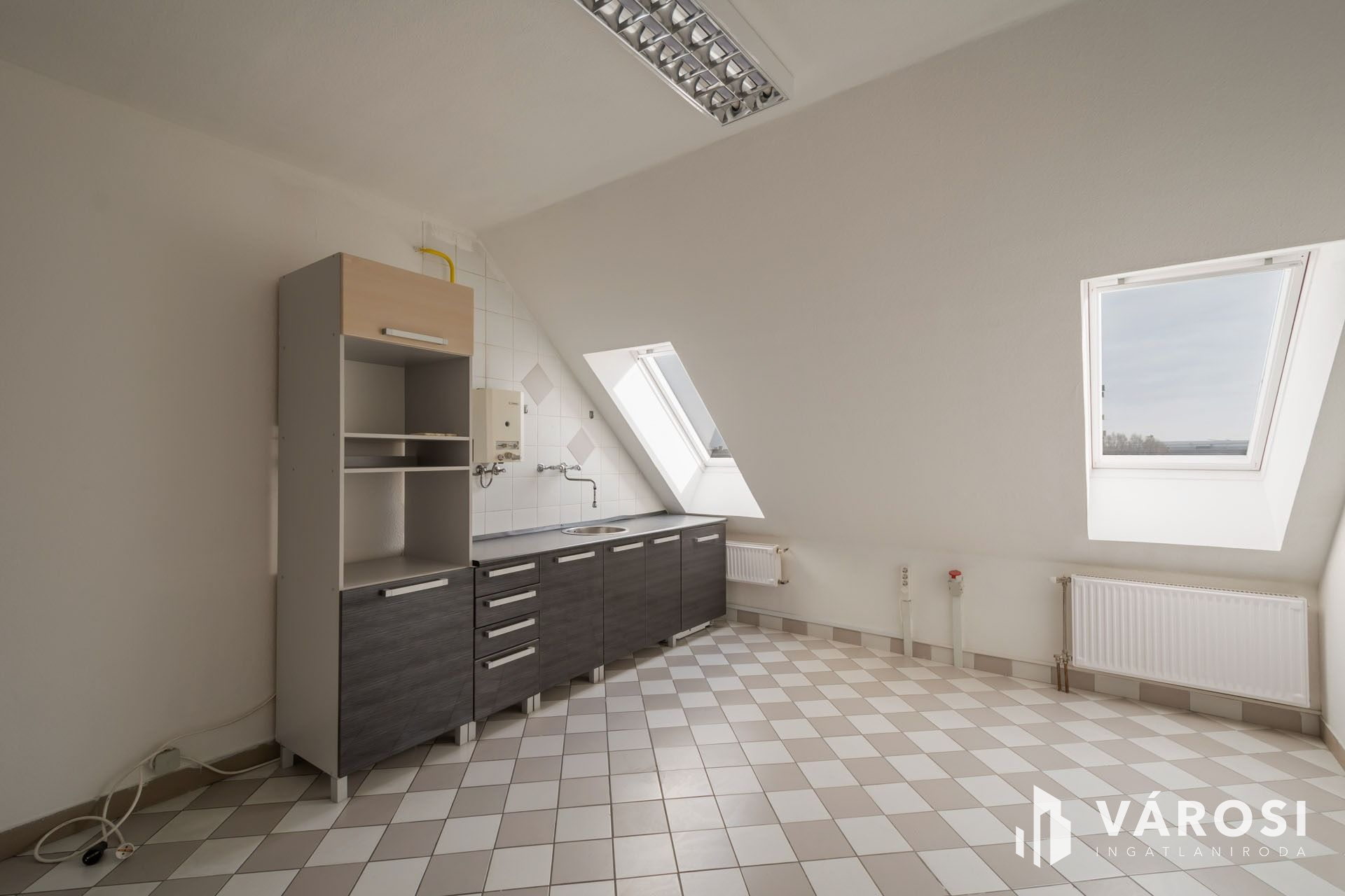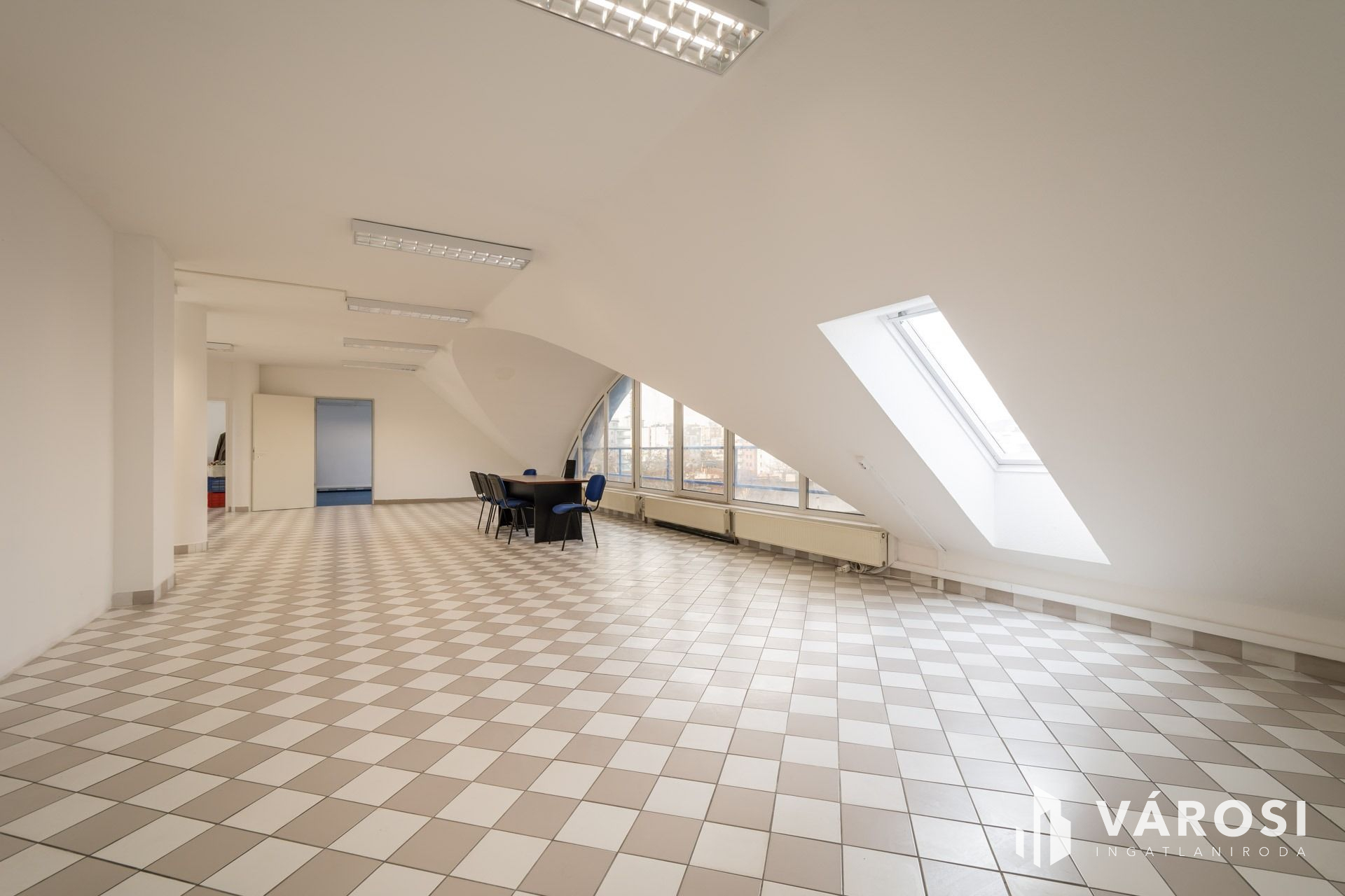 Kiadó a XIII. kerületben, Angyalföldön egy világos, csendes, tetőtéri 230 m2-es iroda.
