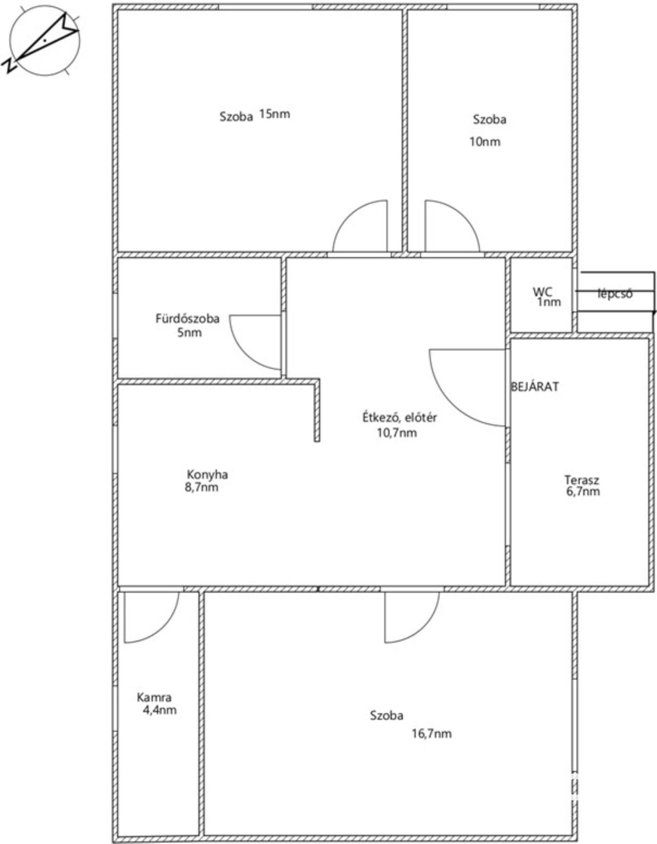 A ház tágas, jól alakítható terekkel rendelkezik: nagy terasz, világos étkező–előszoba, konyha, fürdő, nappali és két hálószoba. A tetőtér beépíthető, így az ingatlan tovább bővíthető.