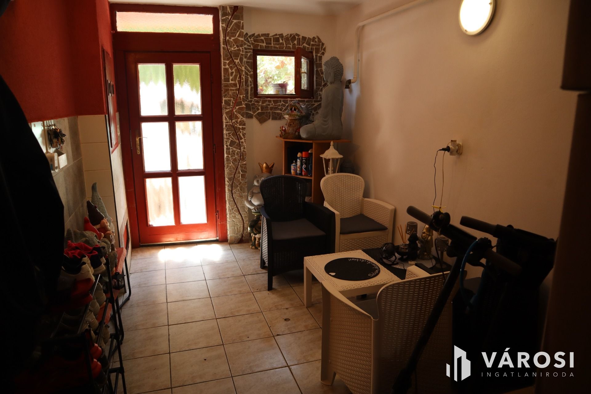 Az ingatlanba lépéskor egy nagy előtér várja Önt/Önöket, amiből nyilik a szépen kialakitott konyha és étkező, illetve itt egy WC is található.