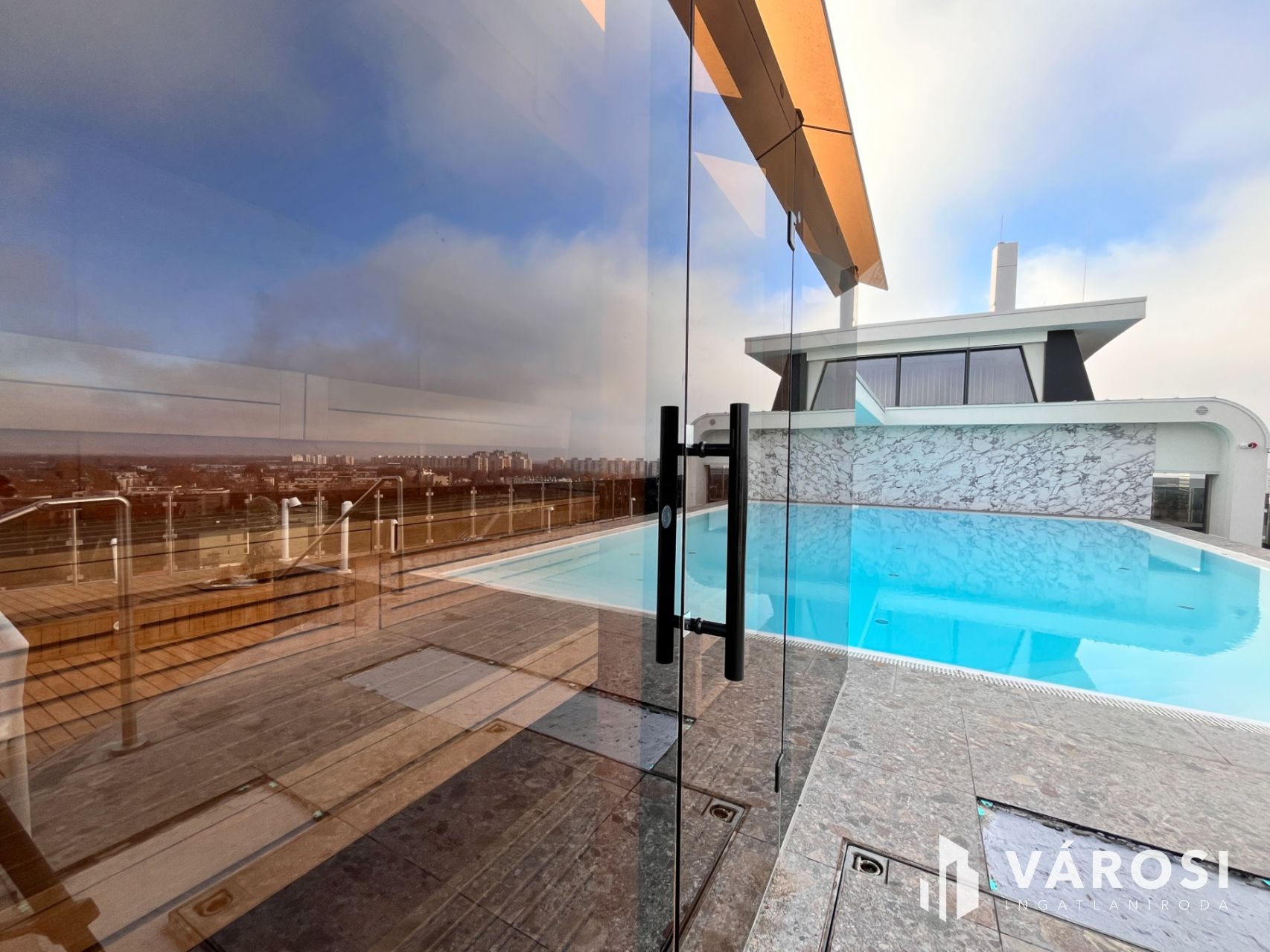 - a panoramic swimming pool and sauna overlooking the main building of the University of Debrecen,