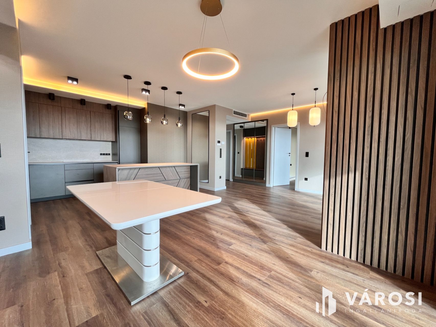 A vételár tartalmazza a szanitereket, lámpatesteket, egyedi konyhabútort, elektromos árnyékolókat és minden beépített bútort.