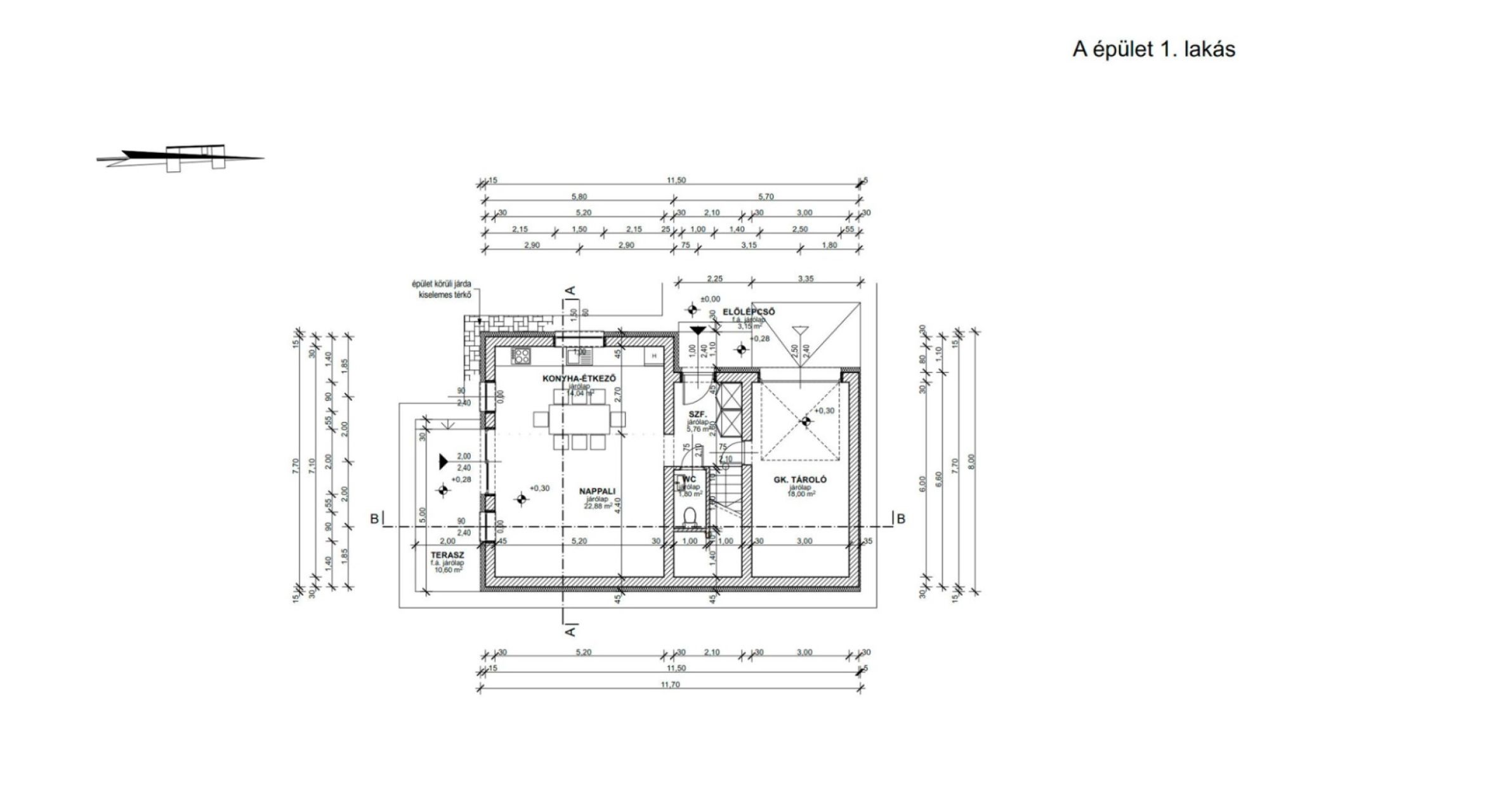 Ez az egyszintes épület három tágas szobát és egy napfényes nappalit kínál, melyek tökéletes helyszínt biztosítanak a pihenéshez és a családi vagy baráti összejövetelekhez. A prémium anyagokból készült amerikai konyha modern megoldásaival garantálja a főzés örömét. Az ingatlan külön fürdőszobával és WC-vel rendelkezik, így biztosítva a kényelmet a mindennapokban.