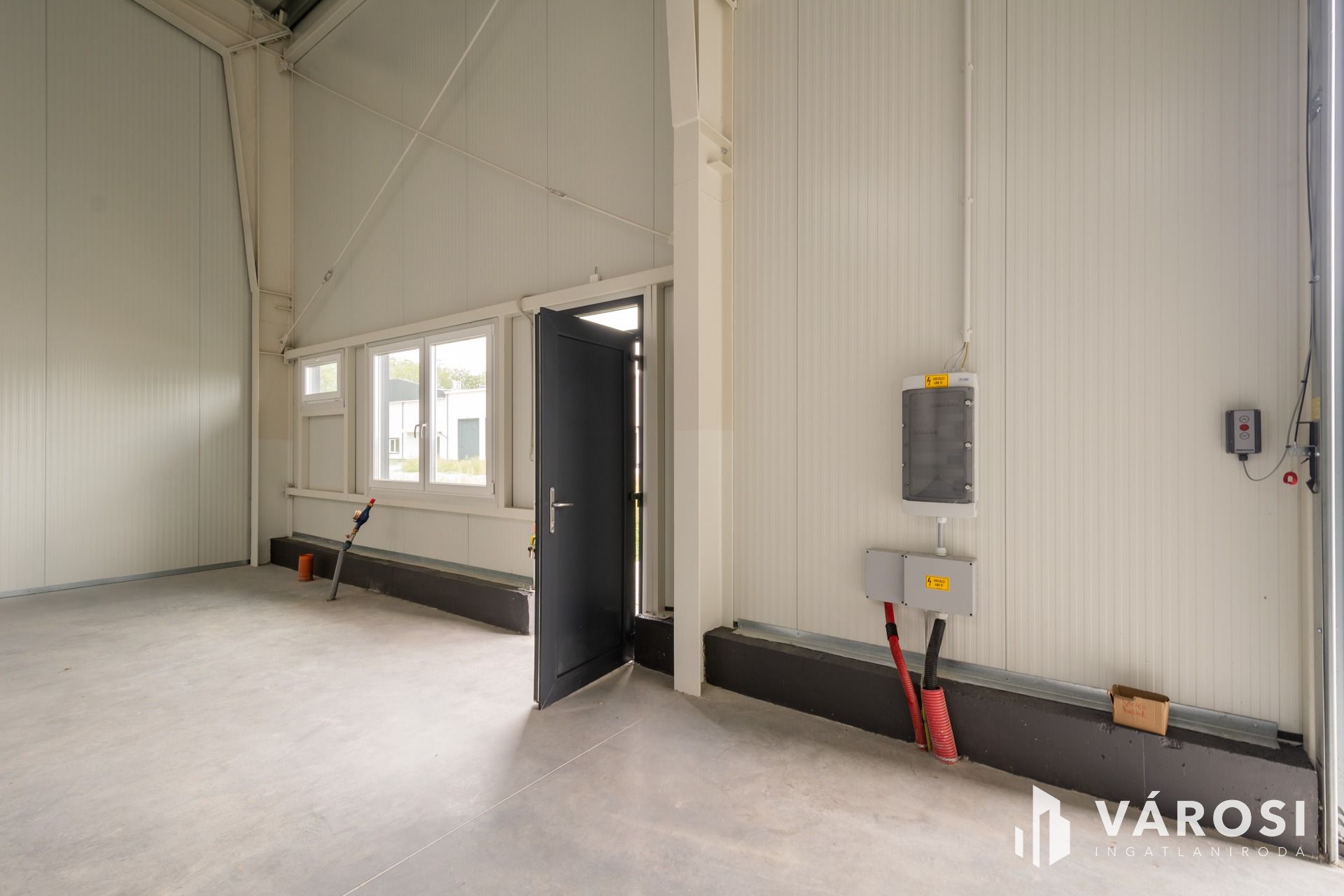 • A csarnokokba be van vezetve a víz, áram, illetve szennyvíz kimenet