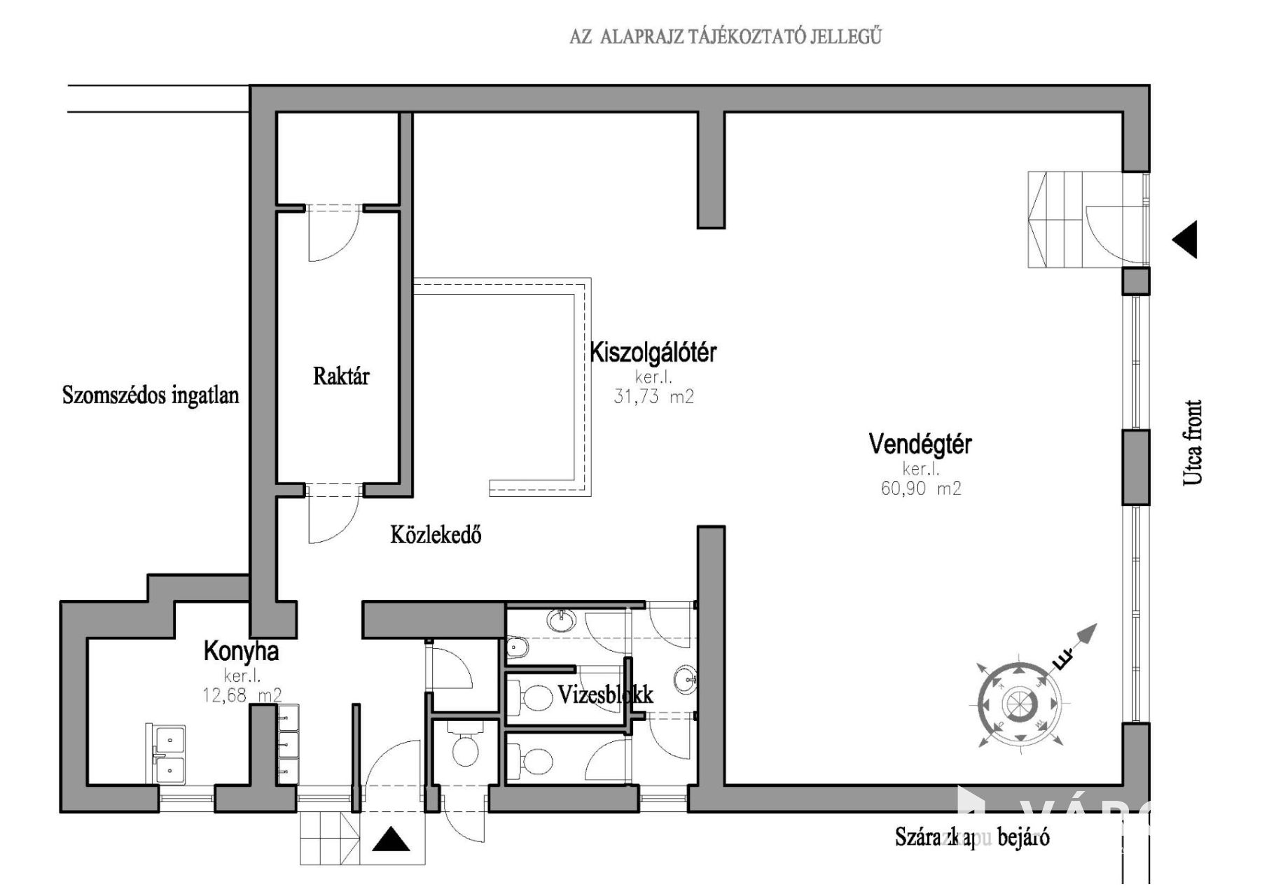 A belváros közelében, négy lakásos társasház utcafronti 107 m2 alapterületű ingatlanját kínáljunk eladásra. A téglaépítésű ingatlan legutóbb vendéglátó helyiségként működött. A tulajdoni lapon lakásként szerepel, és egy kis belső átalakítással tágas, nappali+ két szobás otthon alakítható ki. (lásd.:alaprajzok)