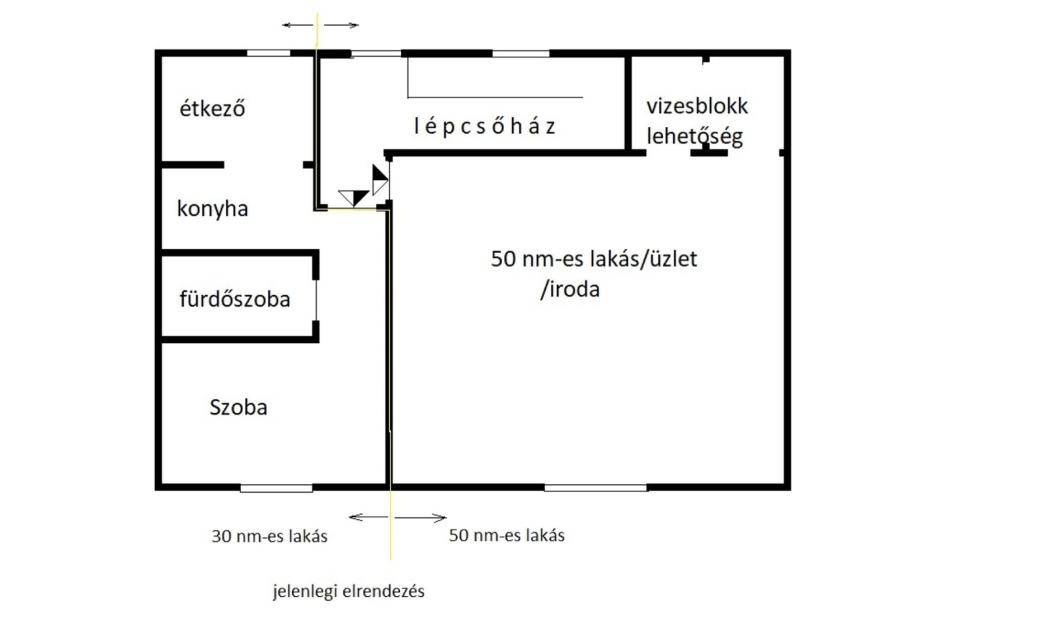 A közművek (víz, villany, gázfűtés) jelenleg egy mérőn vannak az alatta lévő ingatlannal, ezért azok külön választása lenne feladat, egyébként akár jelenlegi állapotában is kiadható. A lakás még üzlethelyiségként van nyilvántartva, de átminősíttethető.