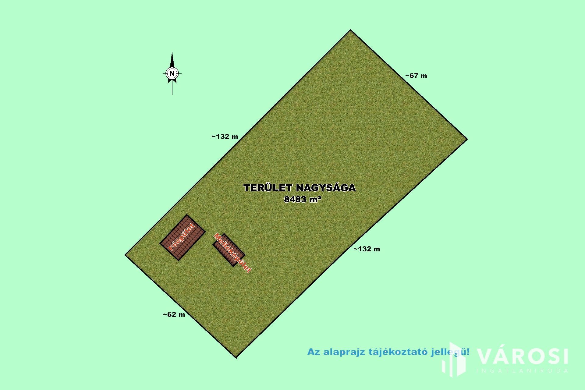 A két helyrajzi számon szereplő ingatlan – egy 2877 m²-es kivett tanya és egy 5606 m²-es szántó – egyben eladó.