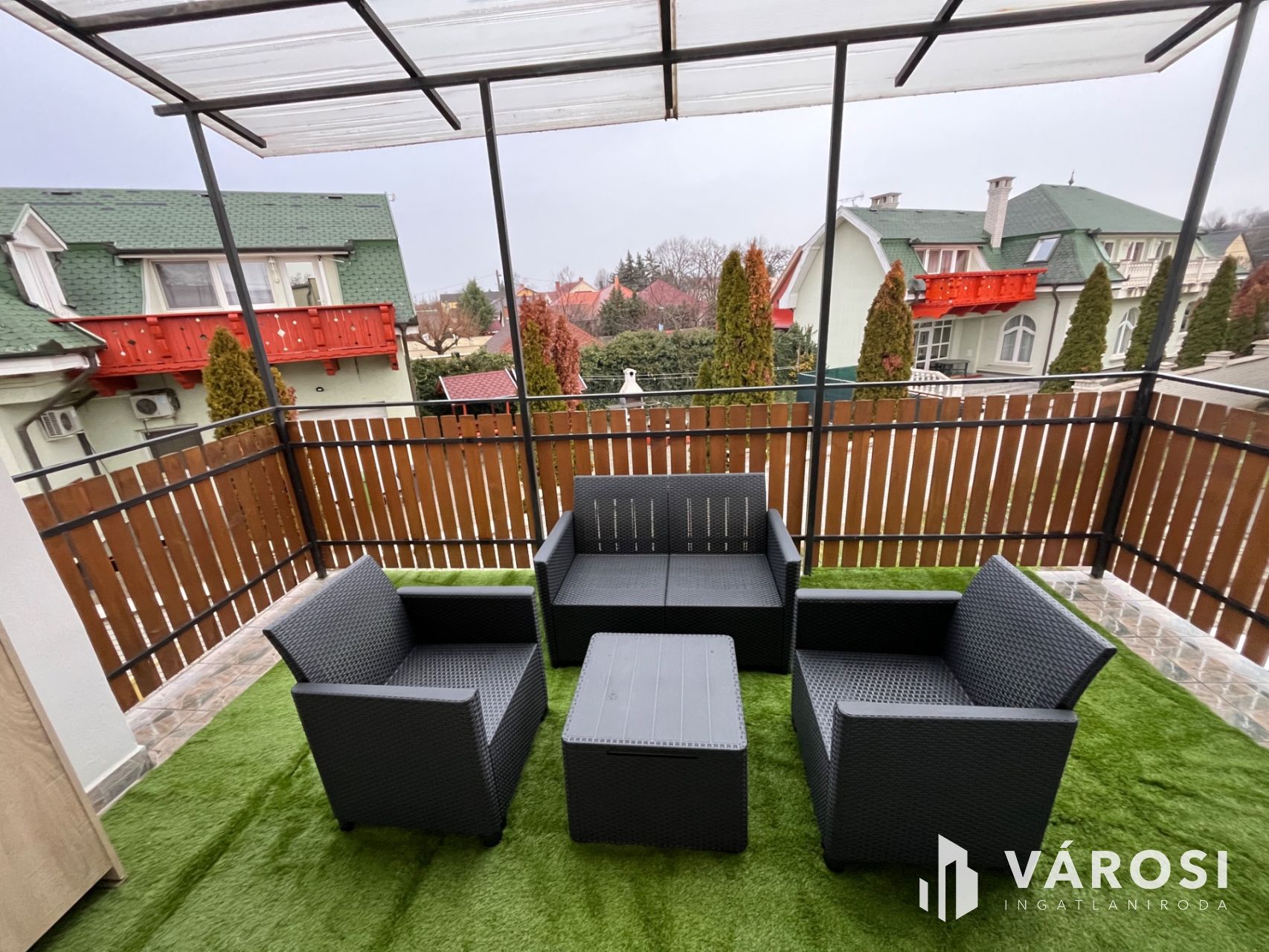 A lakáshoz tartozik egy tágas műfüves kerti bútorokkal ellátott terasz is, ahol élvezheti a zöld környezet nyújtotta nyugalmat. Az udvari gépjárműbeálló biztosítja a kényelmes parkolást. A belváros, a sétálóutca, és a Fürdő közelsége pedig garantálja az igazi Hajdúszoboszlói életérzést!