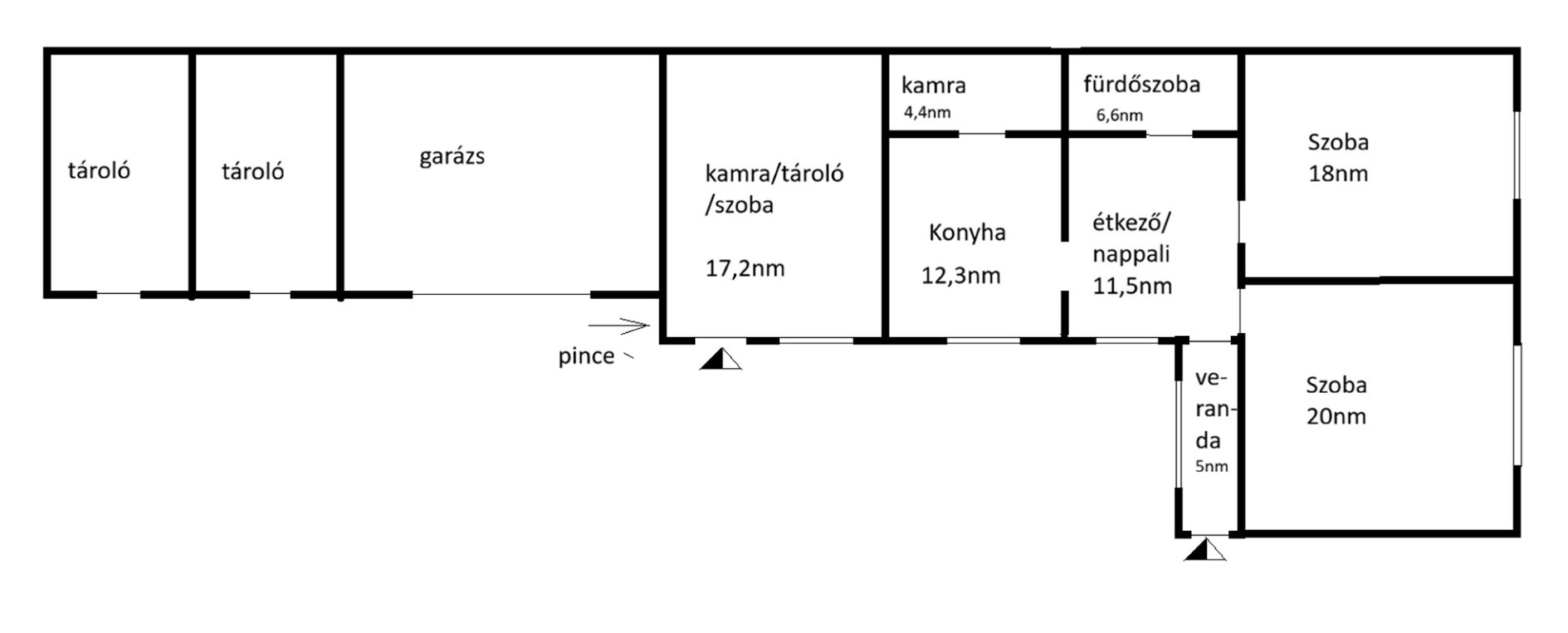 A lakrész bővíthető, hiszen a konyha melletti -jelenleg külön megközelíthető- tároló/kamra, egy ajtó nyitásával akár szoba is lehetne.