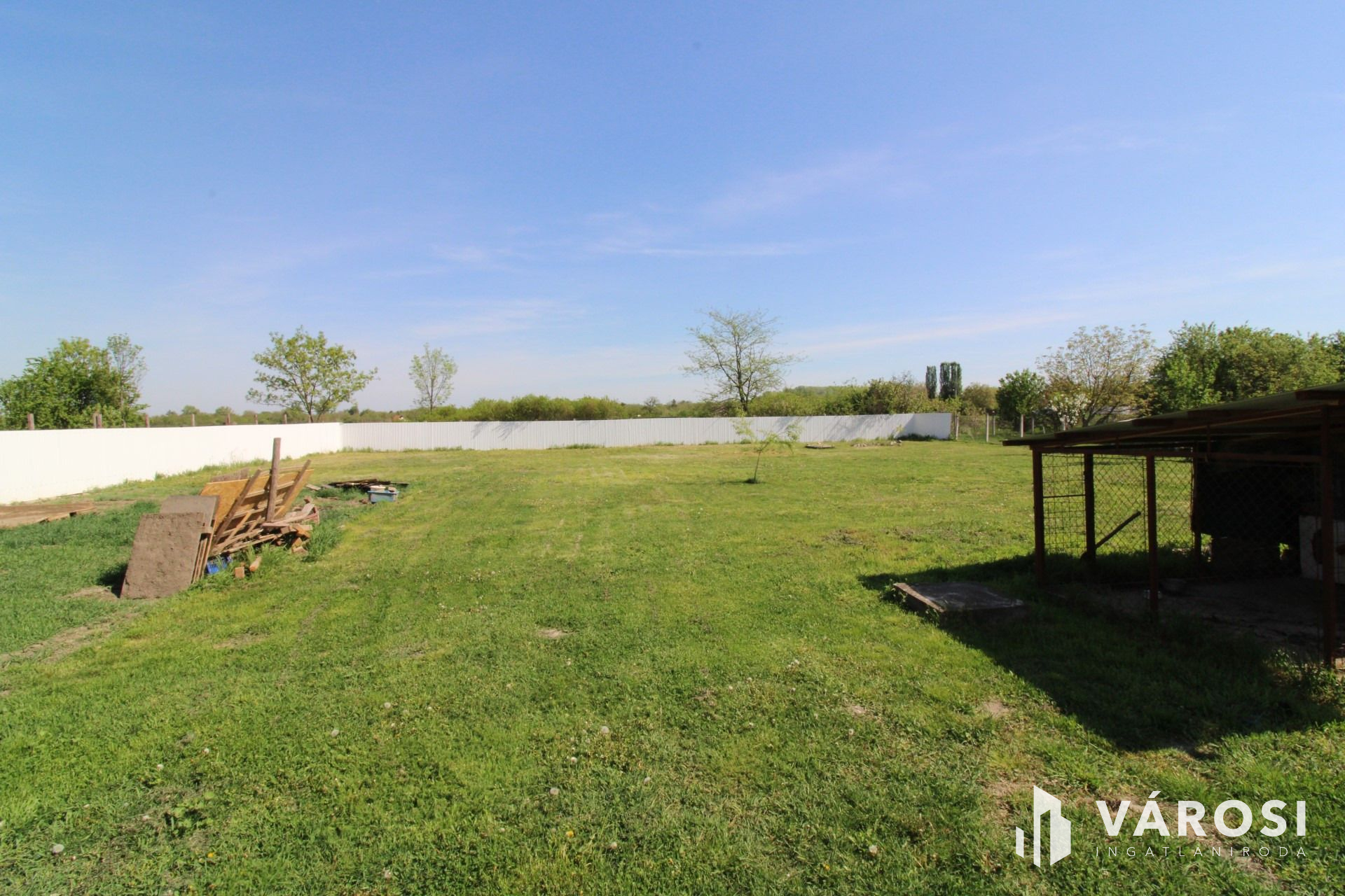 A telek teljes mértékben körbe van kerítve melyen megtalálható egy fúrt kút is, amivel a locsolás biztosítható.