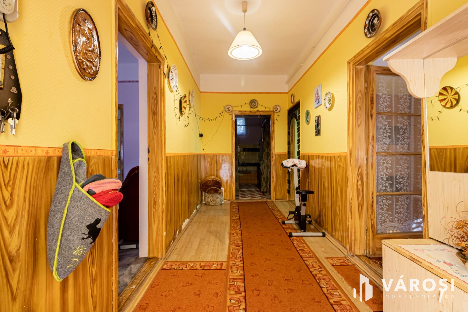 Az alsó szinten található három szoba egy fürdőszoba valamint egy étkező konyhával . A felső szinten négy szoba egy amerikai konyhás nappali, fürdőszoba és egy tároló helység . az ingatlan felső szintje teljesen külön bejáratú így alkalmas két generáció lakhatására vagy akár apartmanozásra is valamint külön elmérő órákkal rendelkezik, így könnyen elszámolható a fenti fogyasztás A tető is jó állapotú az eresz csatornák újak így azzal se lesz gondja leendő tulajdonosának. Az ingatlan fa nyílászárókkal rendelkeznek amelyek redőnnyel vannak ellátva. Az otthon melegét konvektorok biztosítják a meleg vizet villanybojler állítja elő. A felső szint esztétikai felújítást igényel.