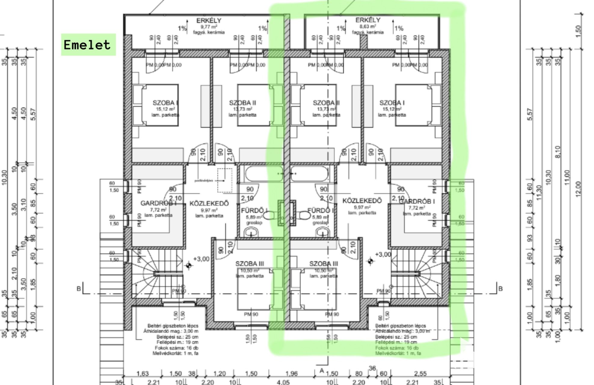 - Falazat: Ytong (30cm) + 10cm Drywit hőszigetelés