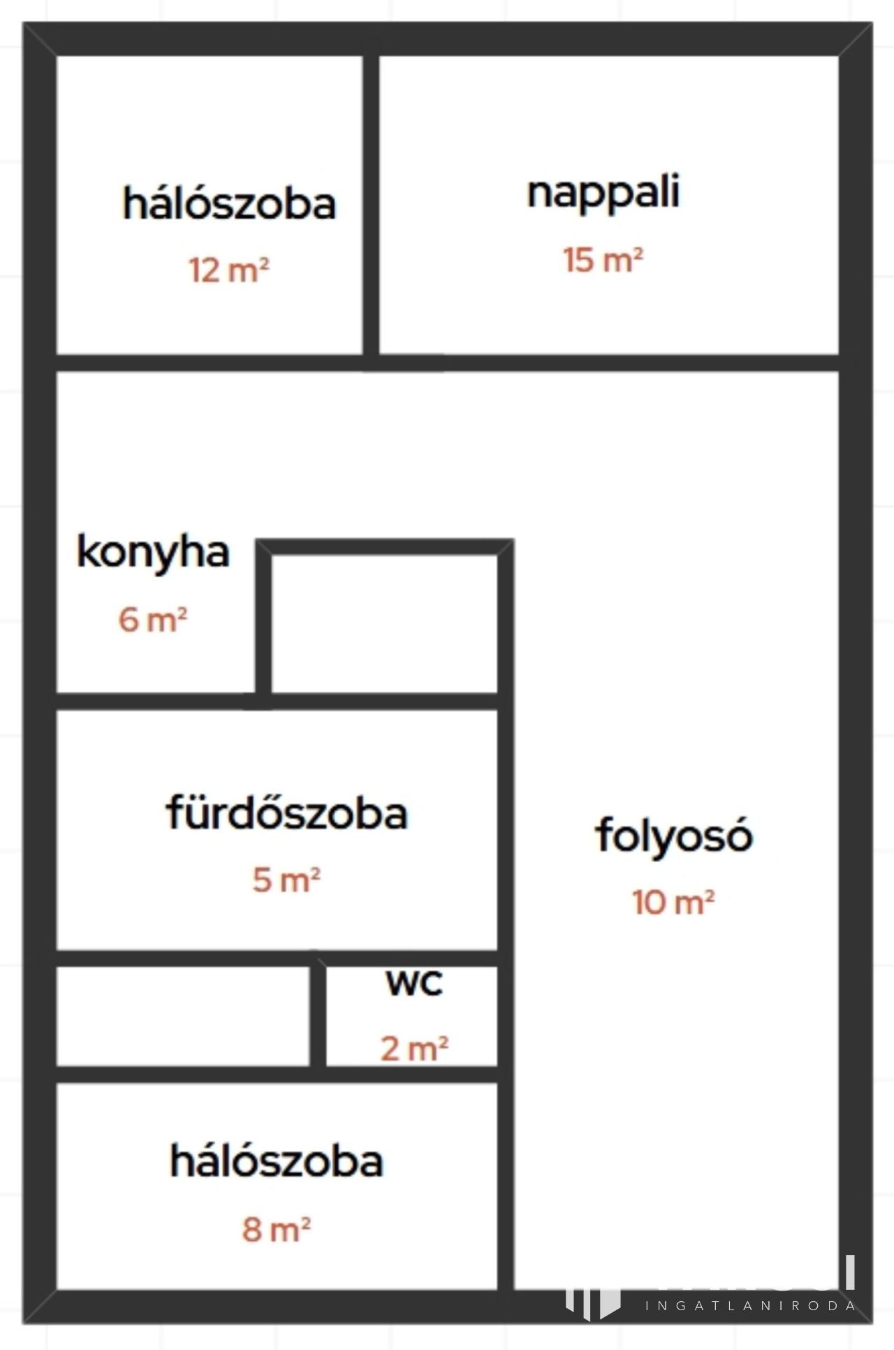 - **Elrendezés:** 2 hálószoba, 1 tágas nappali, külön fürdőszoba és WC