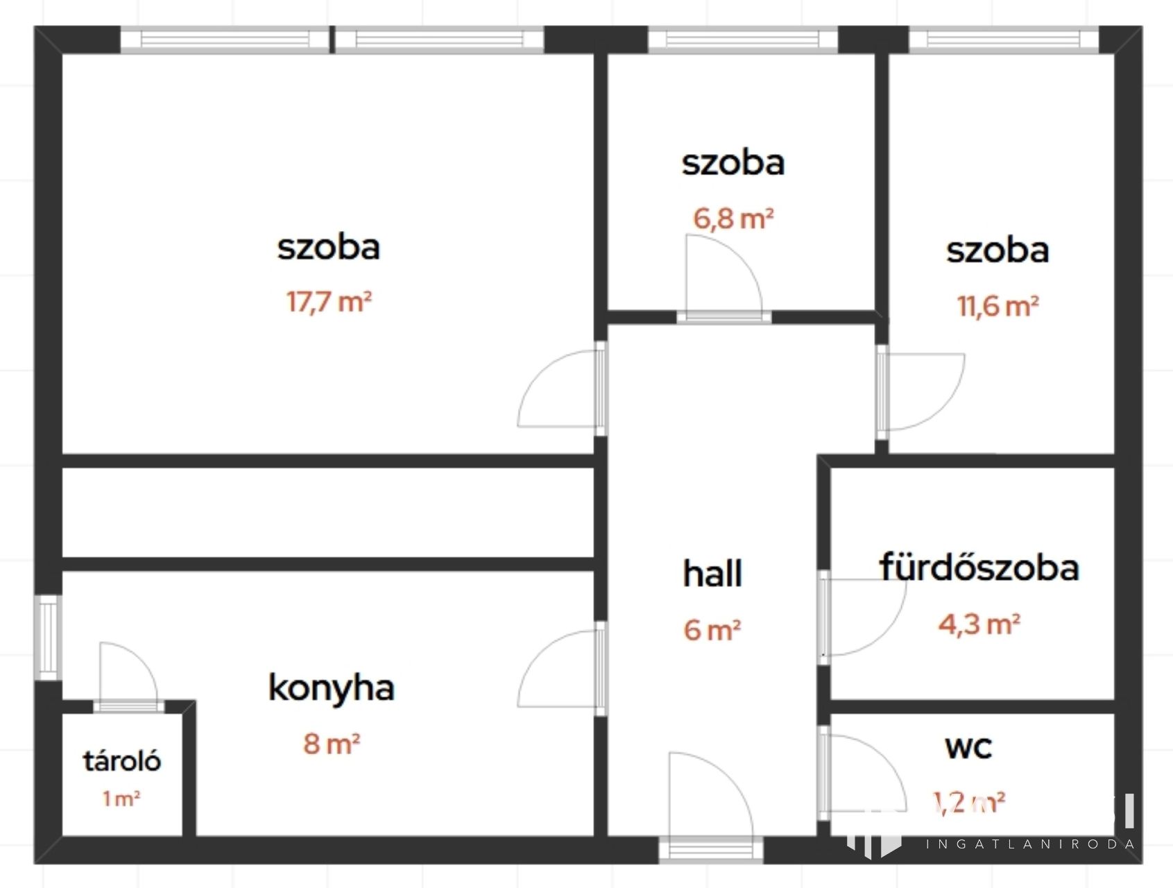 - **Elrendezés:** 1 tágas szoba, 1 világos nappali, 1 fürdőszoba