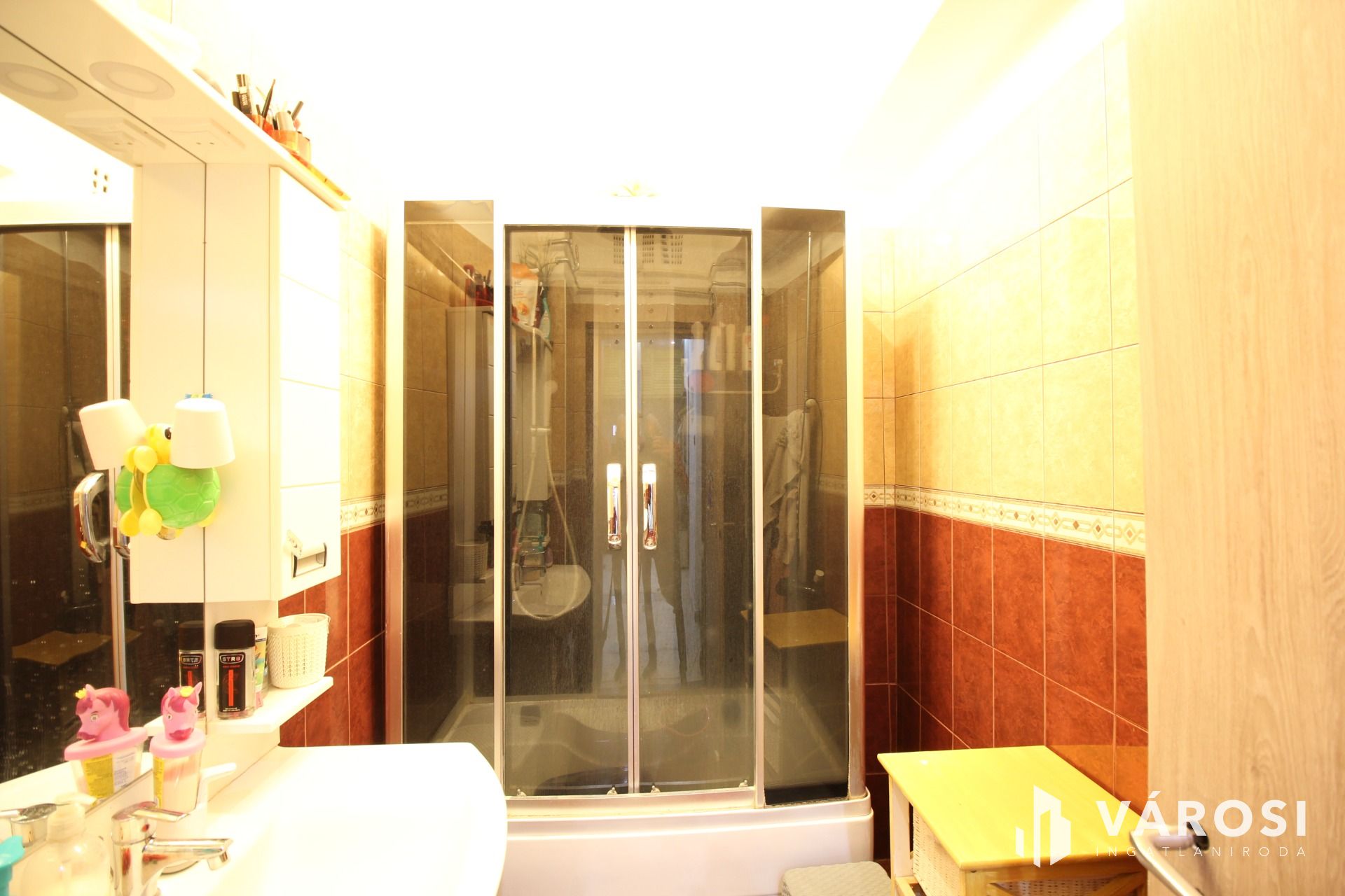 A tulajdonos a bejáratnál alakított ki egy helyiséget, ahol a szárítógépet elhelyezte, a mosógép a konyhapultban beépített. Az ingatlan augusztus után költözhető.