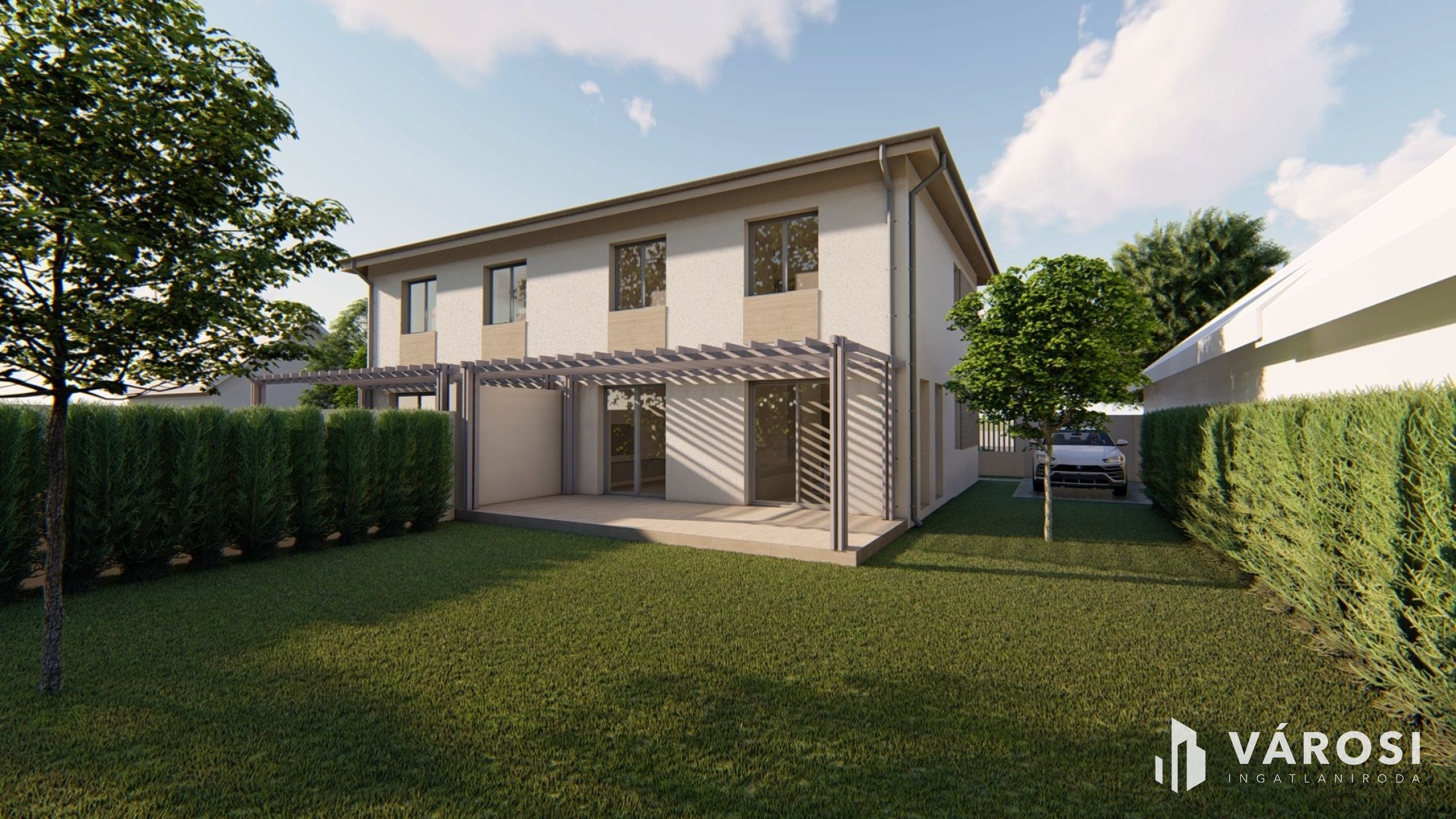 Eladó újépítésű, kulcsrakész kivitelezésű ikerház „Alabástrom” házrésze. Az ikerház a közös fal kivételével, mint két szomszédos ház funkcionál, mindkét rész saját utcafronttal és udvarral rendelkezik.