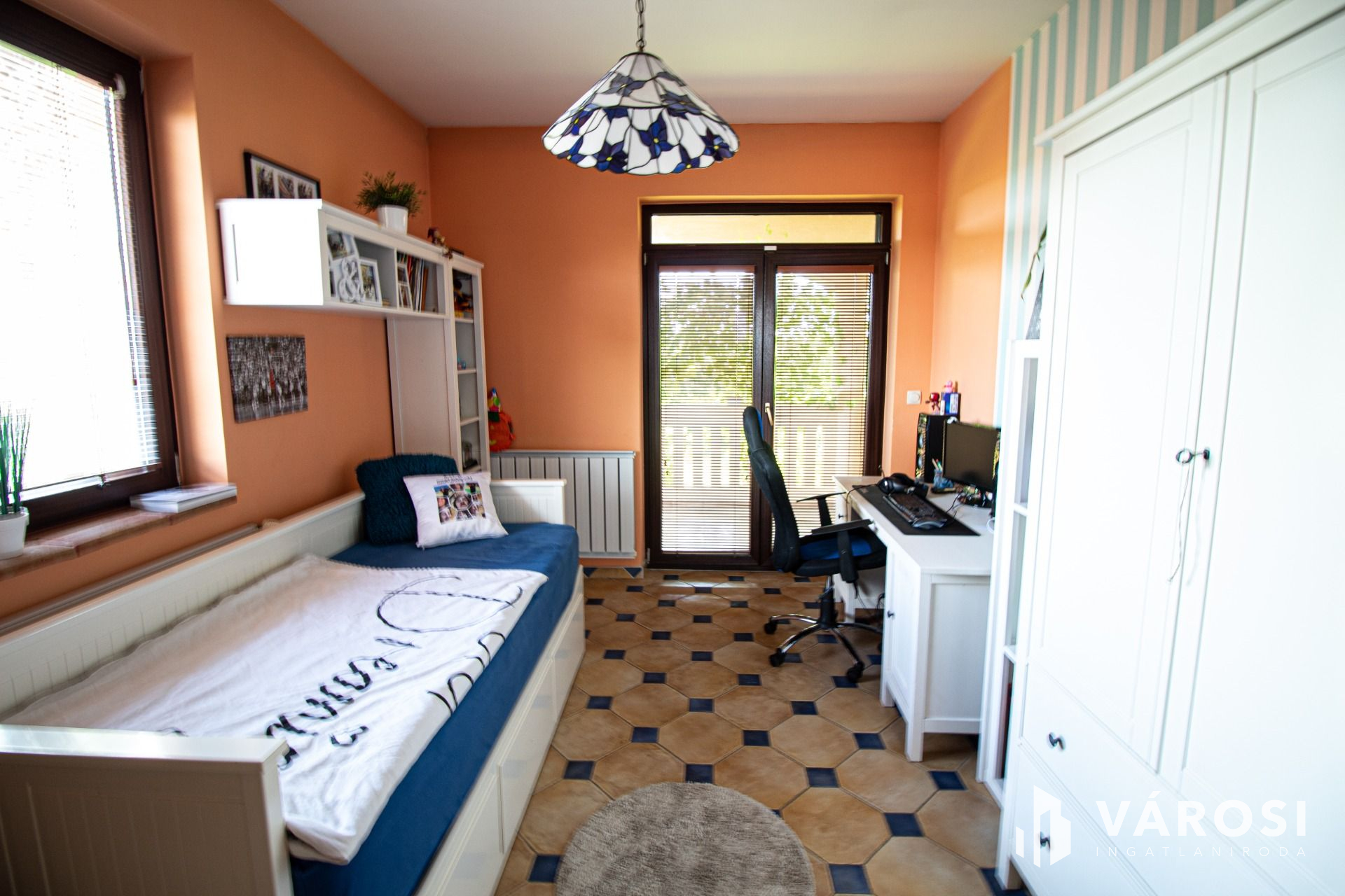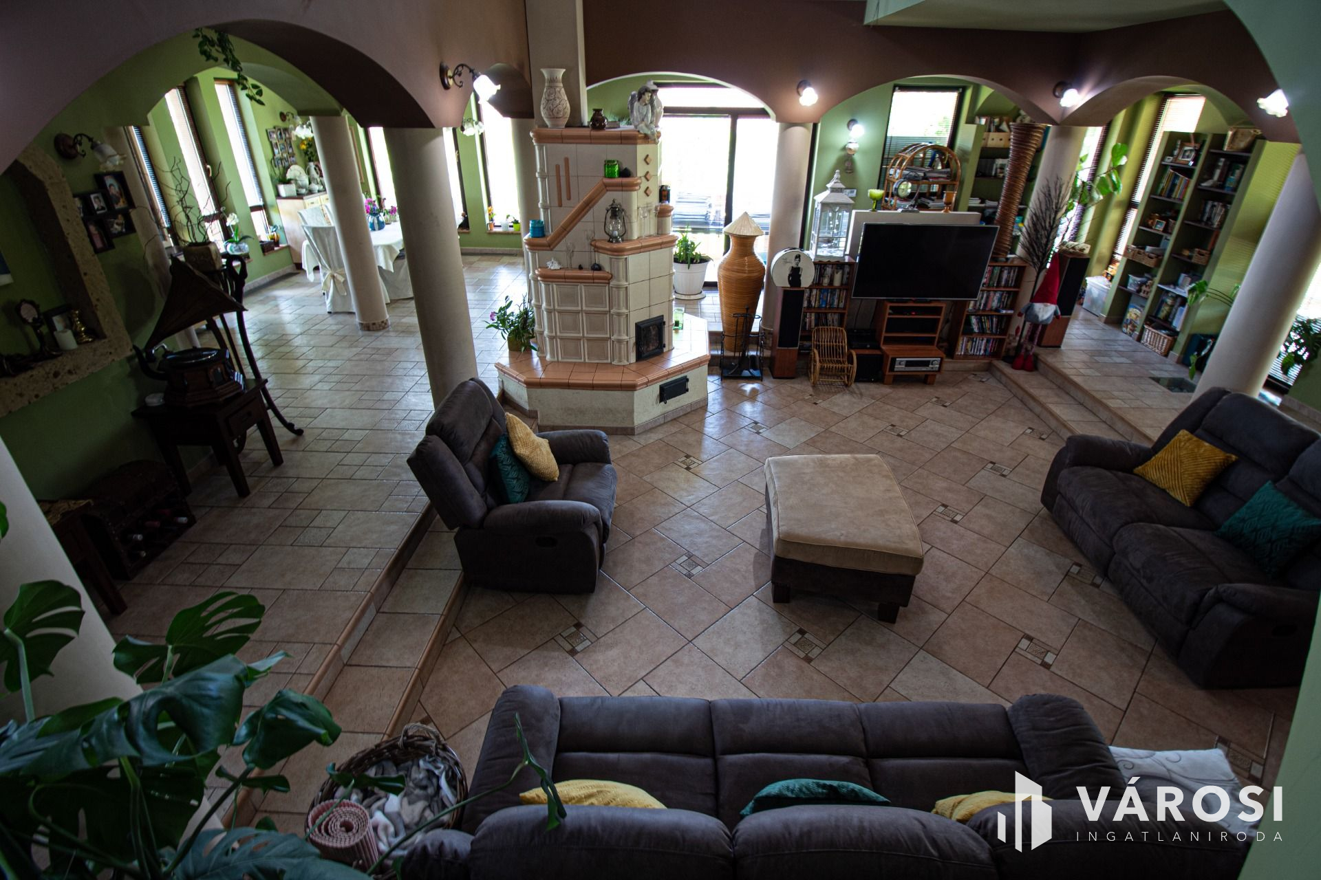 A tulajdonosok a megépítés során minden részletre odafigyeltek és a teljes építkezést felügyelték. A ház 38-as Phorotherm téglából épült, mely nemes vakolattal lett ellátva, a tető pedig Terrán héjazatot kapott. Az ingatlan belső kialakítását nézve a nagy terek dominálnak, hisz minden helyiség a nappaliból belátható. Az ingatlanba belépve egy szép, tágas előszobába érkezünk, mely térből már láthatóvá válik a belső szinteltolás is, ami szintén a mediterrán stílus jelképe. Ezen helyiségből továbbhaladva, tudjuk egy egyedi ívelt lépcsőn megközelíteni a felső szintet, amely 3 külön bejáratú szobából egy külön fürdőből és egy külön mellékhelyiségből áll. Mind 3 szobához teraszkapcsolat tartozik. Az alsó szintre visszatérve, található 2 külön bejáratú szoba, egy nagy légtérrel rendelkező nappali konyha étkező szintén teraszkapcsolatokkal. A ház tájolásának köszönhetően amely kelet-nyugat-dél a nap minden szakában a beltér fényáradatban úszik. A szigetelésről műanyag nyílászárok fa színben gondoskodnak. Az árnyékolást, exotikus gőzölt fa reluxák oldják meg. A meleg nyári napok lehűtésében, több beltéri klíma segédkezik. A hideg téli napok kifűtésében és a meleg víz előállításban, egy nagy teljesítményű cirkó kazán, használati melegvizes tartállyal összekapcsolva, radiátorokon és padlófűtésen keresztül gondoskodik, ezzel szolgálva a bent lakók kényelmét. A nappali hangulatát tovább fokozza, a központilag elhelyezett fa tüzelésű cserépkályha is amelynek melege, a fa ropogása szintén hozzájárul a lakrész téli nyugalmához. A ház belső hangulatát, a teraszra kilépve is érezhetjük, a felfuttatott szőlőnek és a szép igényes kertnek köszönhetően. A terasz adottságai nagyobb családi rendvények, partik megrendezésének tökéletes helyszíne. Gépkocsikkal való parkolás a dupla garázsban megoldott ami kapcsolatban van a belső lakrésszel is. A lakók biztonságára riasztó rendszer vigyáz, mely a nem kívánatos mozgás illetve ajtónyitás esetén azonnal jelez a távfelügyeleti cégnek.