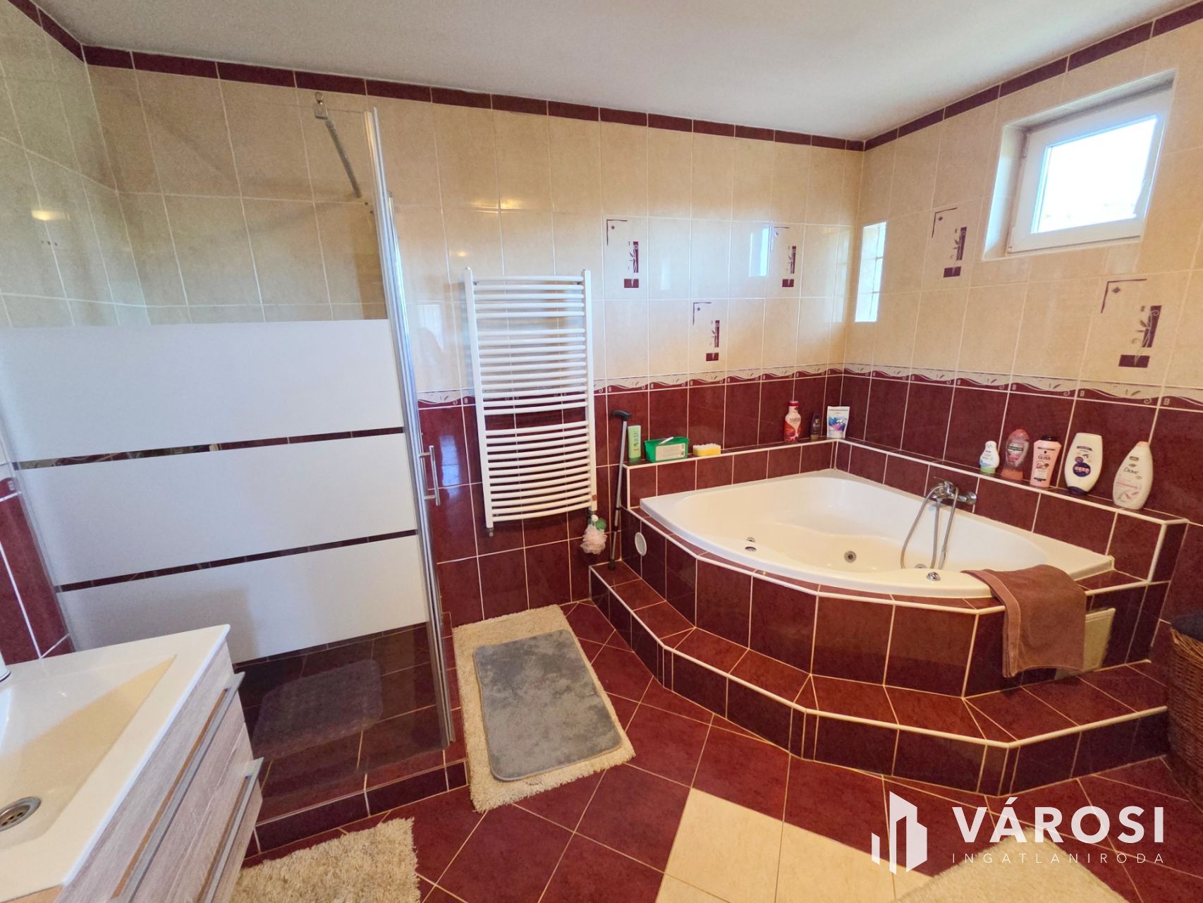 - A fürdőszobában hidromasszázs funkcióval rendelkező sarokkád és külön zuhanyzó is kialakításra került