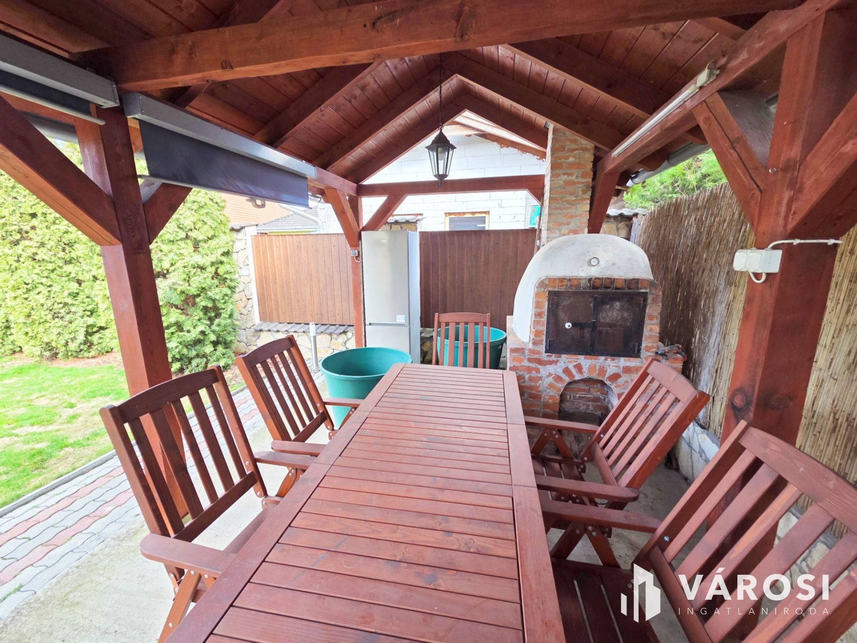 - Fedett, kiülős sütögetőhely, kemencével, grillezővel, kinti hűtőszekrénnyel, kerti bútorzattal
