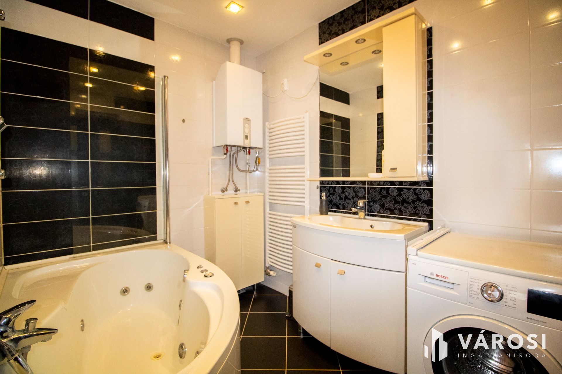 Az ingatlan teljes, egyedileg gyártatott bútorozattal együtt eladó, a konyha pedig vadonatúj, modern bútorral és minőségi konyhagépekkel felszerelt. A műanyag, dupla üvegezésű, redőnyös nyílászárók, a több ponton záródó biztonsági bejárati ajtók, a modern beltéri ajtók, valamint a prémium burkolatok és minőségi szaniterek mind a gondos tervezést és a fiatalos, esztétikus megjelenést erősítik. A fűtést kombi gázkazán biztosítja, amit egy 3,5 kW-os hűtő–fűtő klíma egészít ki, továbbá a lakás háromfázisú árammal is rendelkezik. Az ingatlan fenntartása rendkívül kedvező, mivel két oldalról és alulról is fűtött és szigetelt.