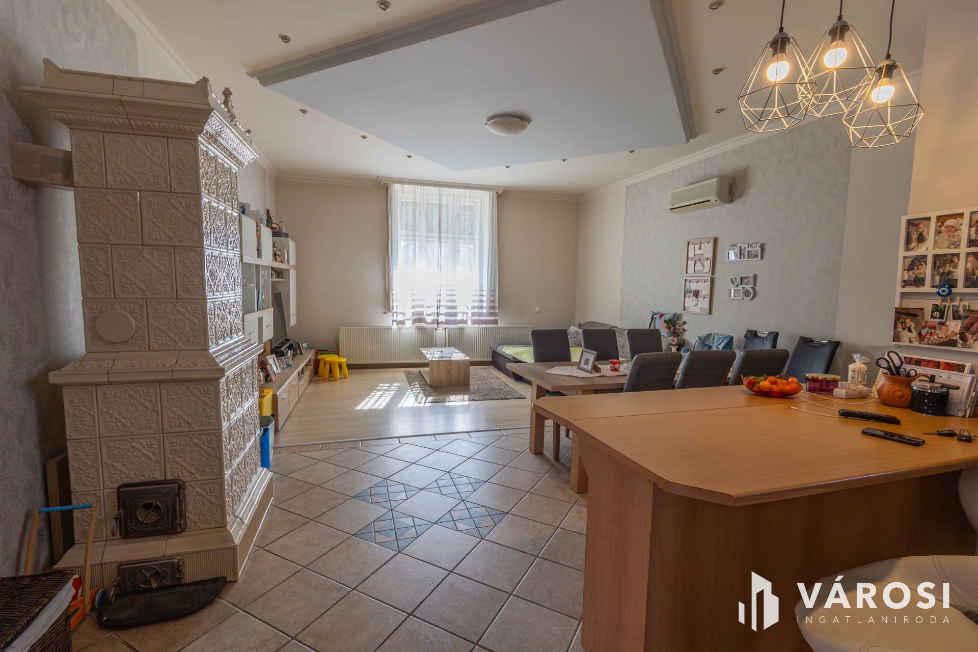 - A ház ékköve a nappaliban található Zsolnay cserépkályha.