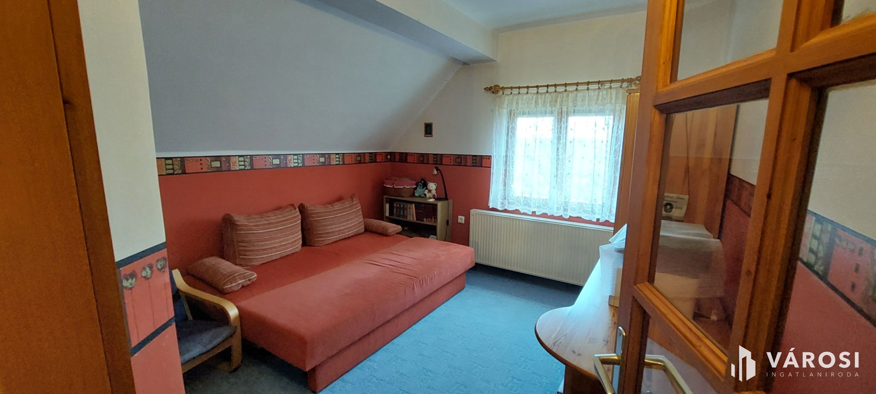 Emelet: galériás körfolyosó, 4 hálószoba, nappali, fürdőszoba + tároló, loggia