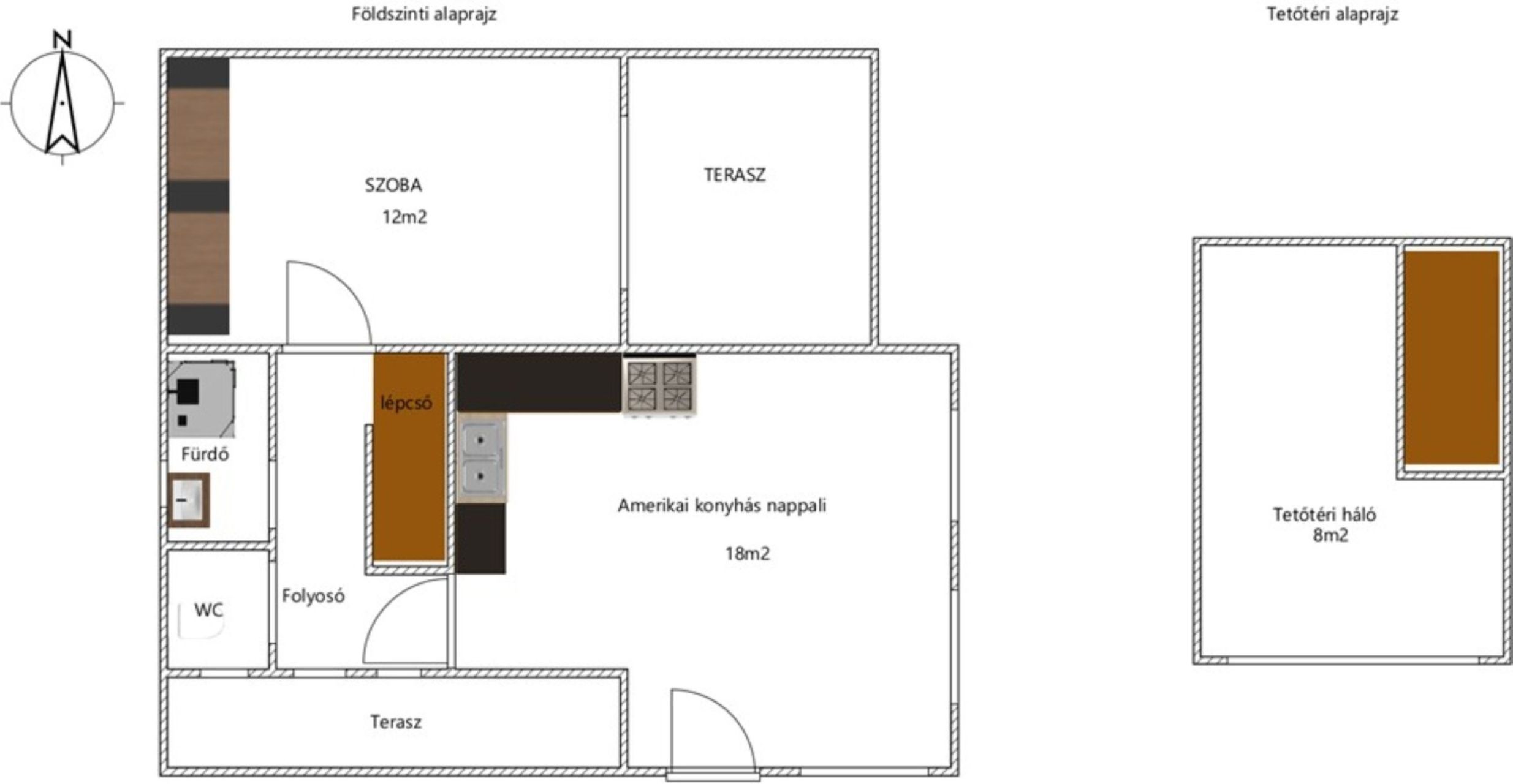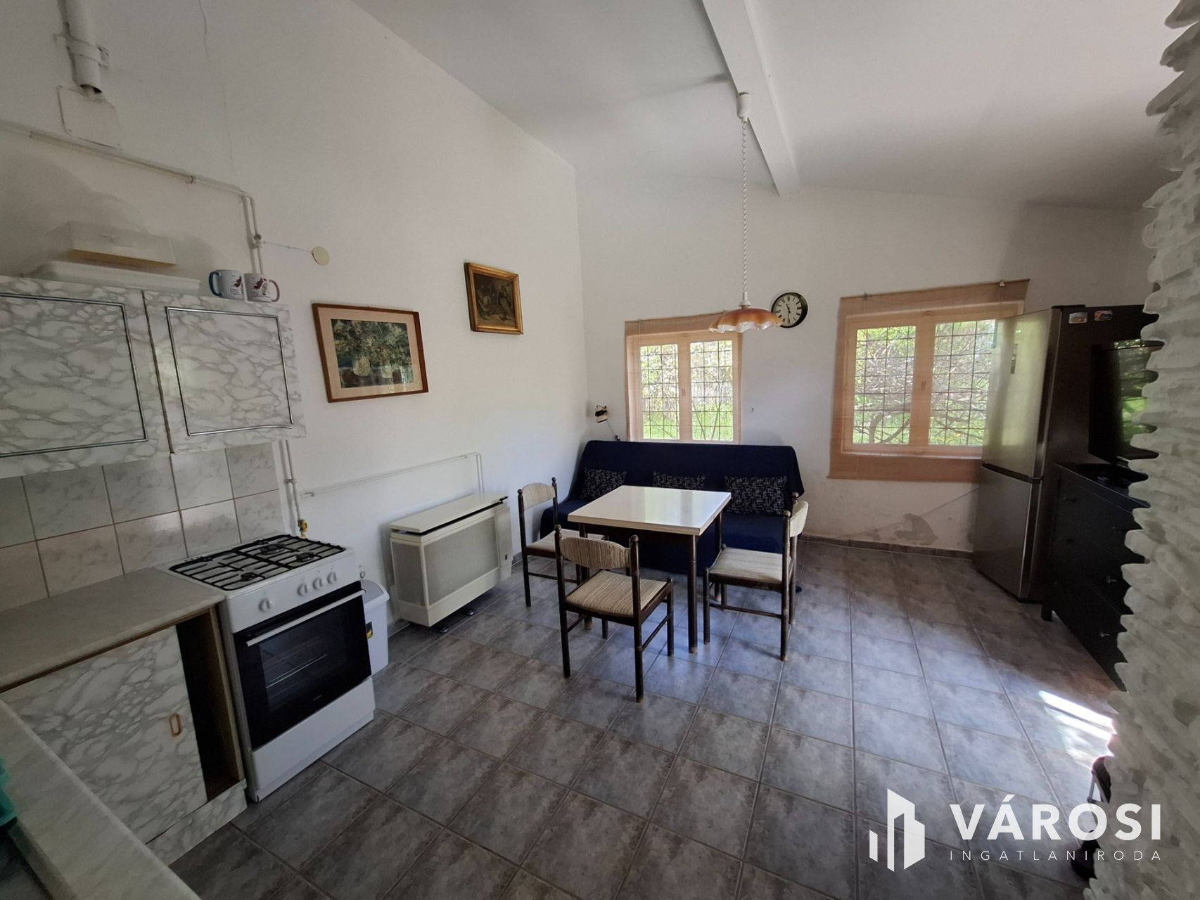 - **Nappali:** Tágas, világos tér amerikai konyhával