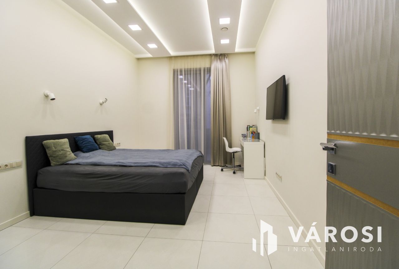 - Grandiózus belső terek – 71 m²-es amerikai konyha-étkező-nappali, három hálószoba (12, 17 és 22 nm), két fürdőszoba (21 és 5,5 nm), külön WC, gardróbok, háztartási helyiség.