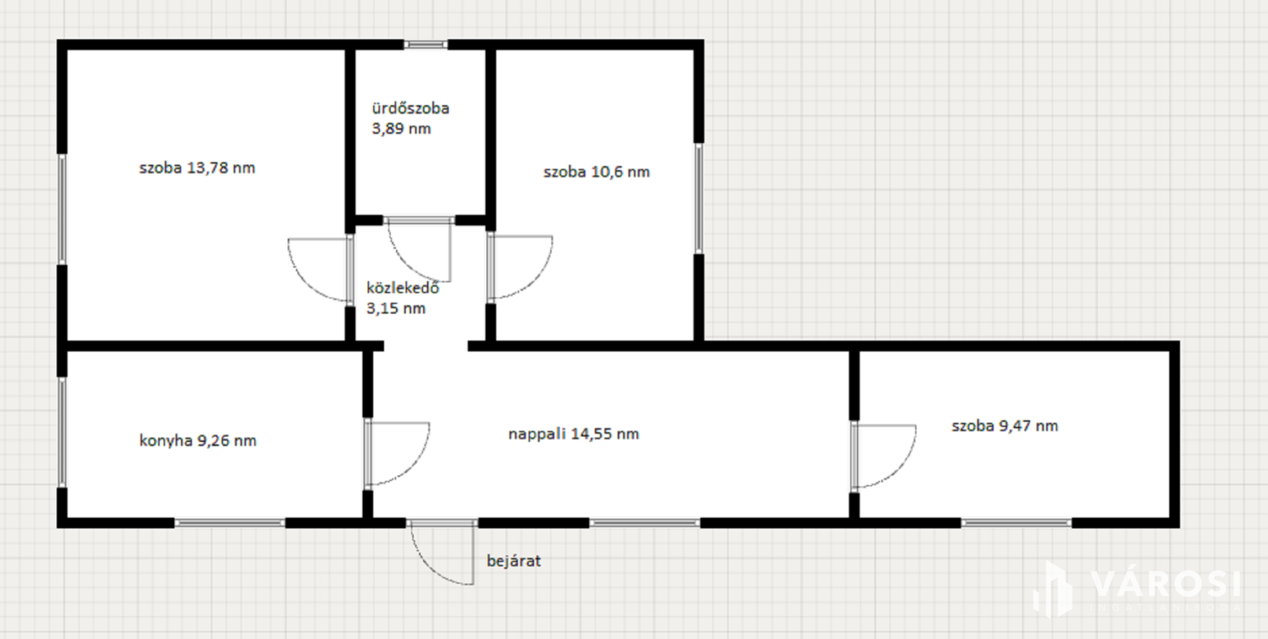 Összetétele: 3 szoba, nappali, konyha, közlekedő, fürdőszoba.