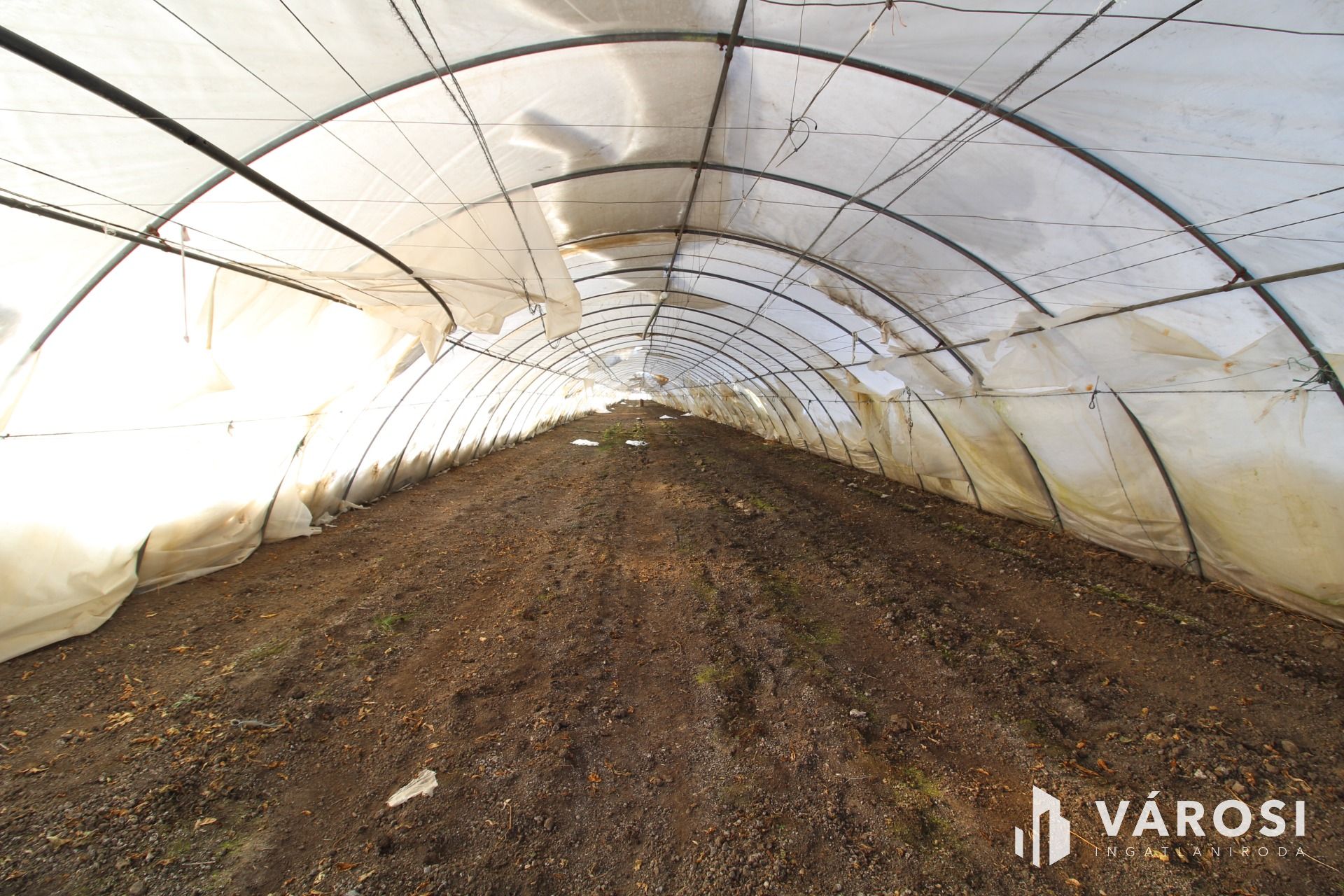 A területen 7 méter széles és 168 méter hosszú fóliasátor van.