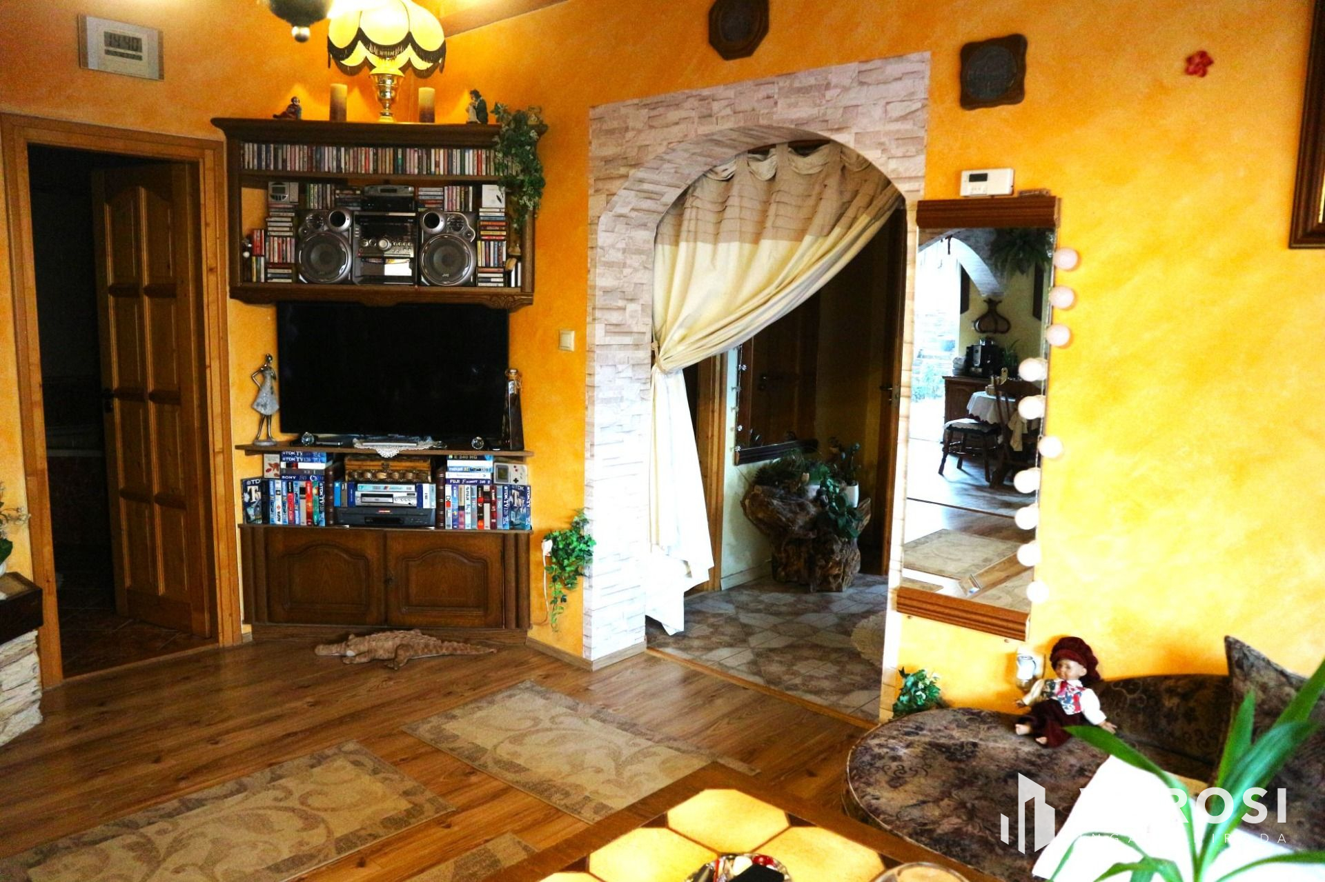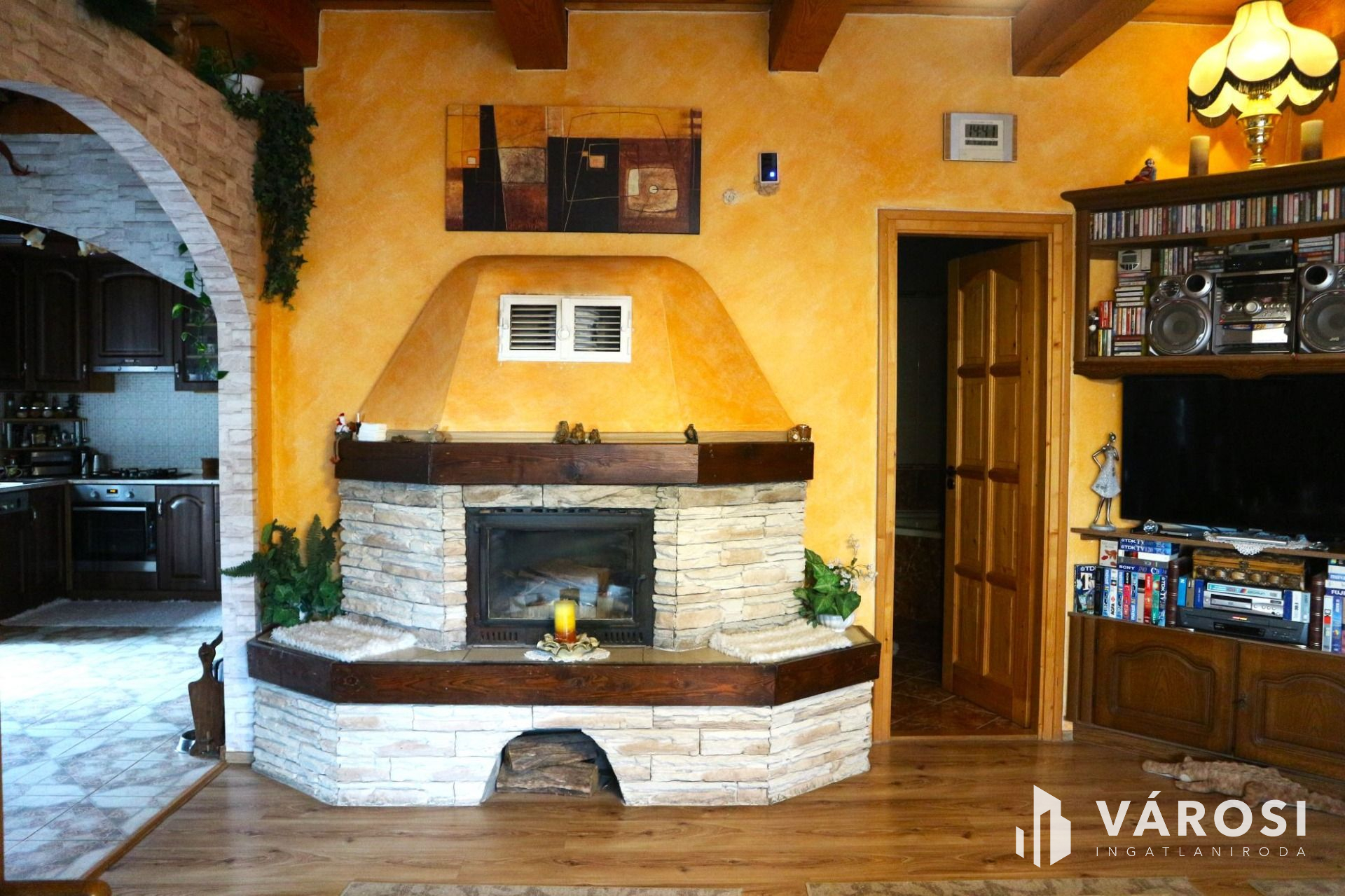 In the interior of the property, there is a modern American kitchen with spotlights, which provides a comfortable home for lovers of gastronomy and people with a stomach! Thanks to the new electricity network and water pipelines, we don't have to worry about old, outdated lines. And we can comfortably store our household items in our own storage. Roof covering bitumen shingles.The property also has a wonderful built-in fireplace, which makes winter evenings even more intimate and romantic, accompanied by a small mulled wine. The rustic ceiling beams reinforce this feeling even more. The property has three-phase electricity, so we can use any larger machine. And the built-in wardrobes make the property even more practical, because it can absorb a lot of clothes!