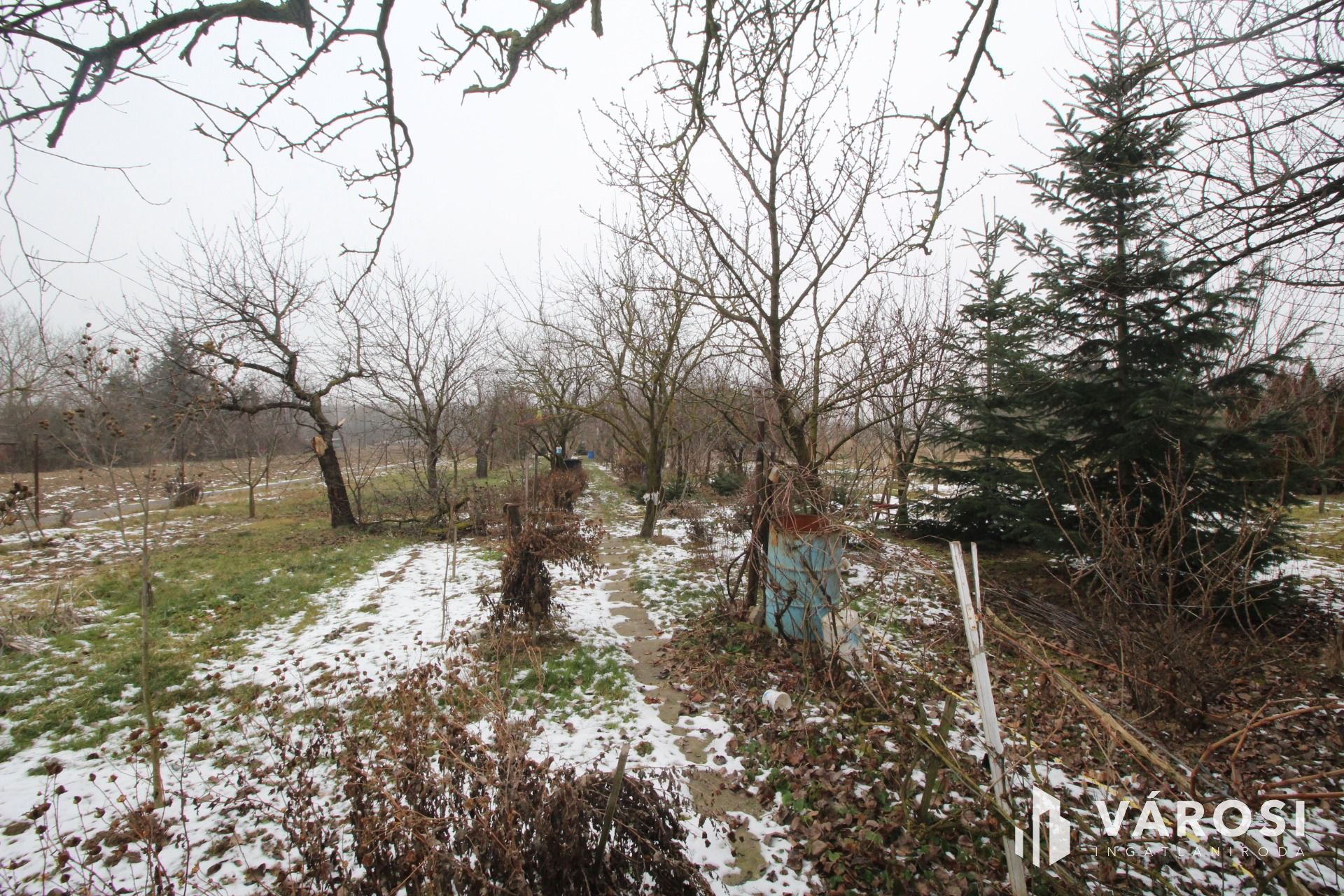 A tágas kertben sokféle termő gyümölcsfa található, melyek ellátják a családot friss gyümölccsel.