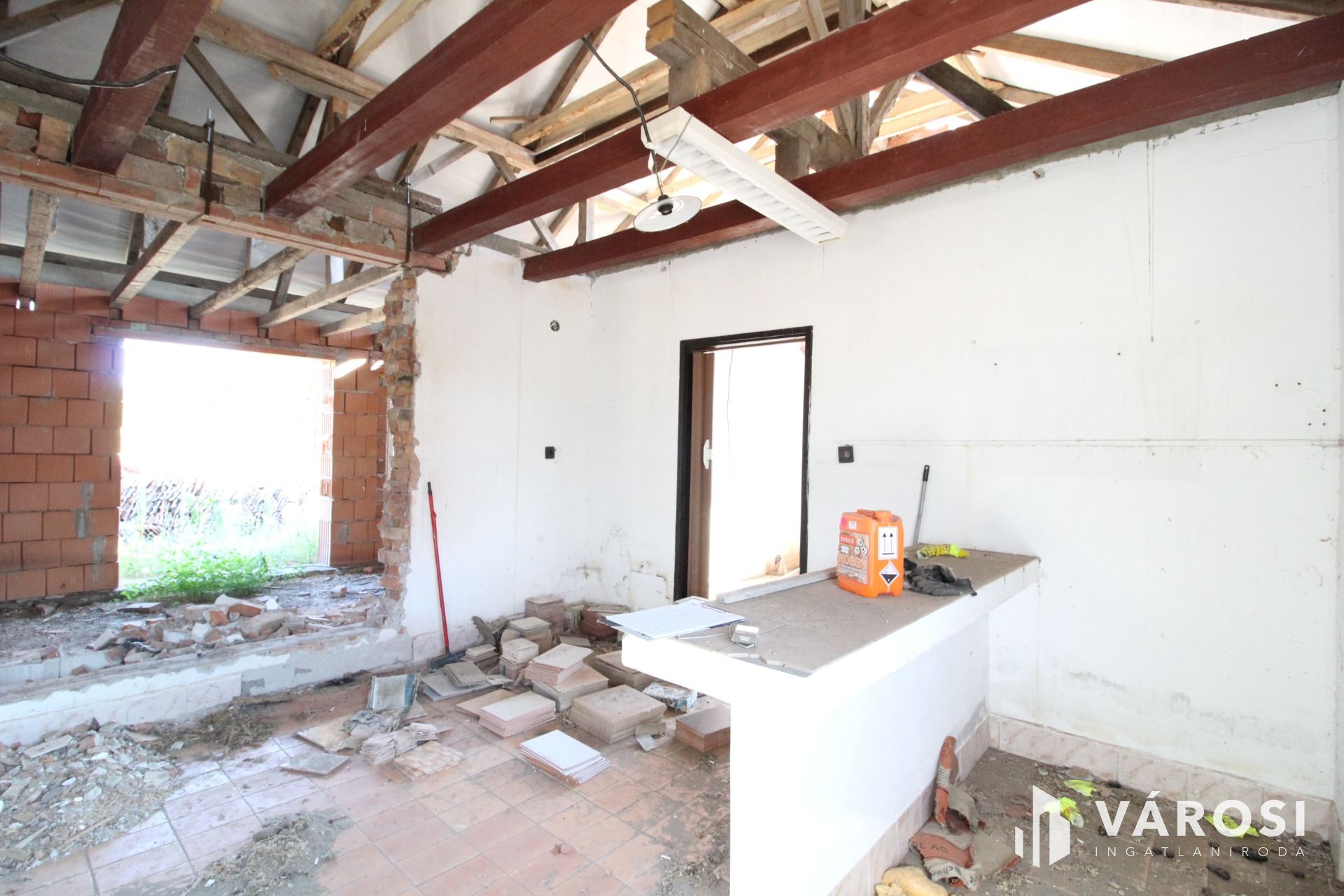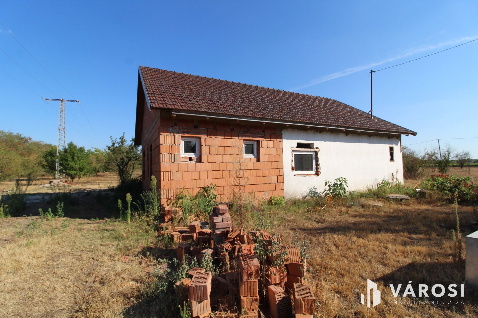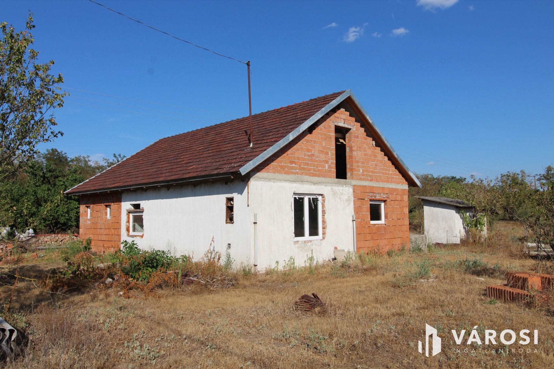 Az épület falazata tégla, beton alapokon. Az ingatlanban az áram be van vezetve. a vizet fúrt kút szolgáltatja, a szennyvíznek derítő van kialakítva. Az épület átalakítása megkezdődött, a homlokzatra műanyag nyílászárók kerültek. Az épület befejezése az új tulajdonos fantáziájára van bízva. Az alaprajzon feltüntetett helyiségek az eredeti tervek szerinti elképzelést mutatják. A tetőszerkezet új faanyagból készült cserépfedéssel.