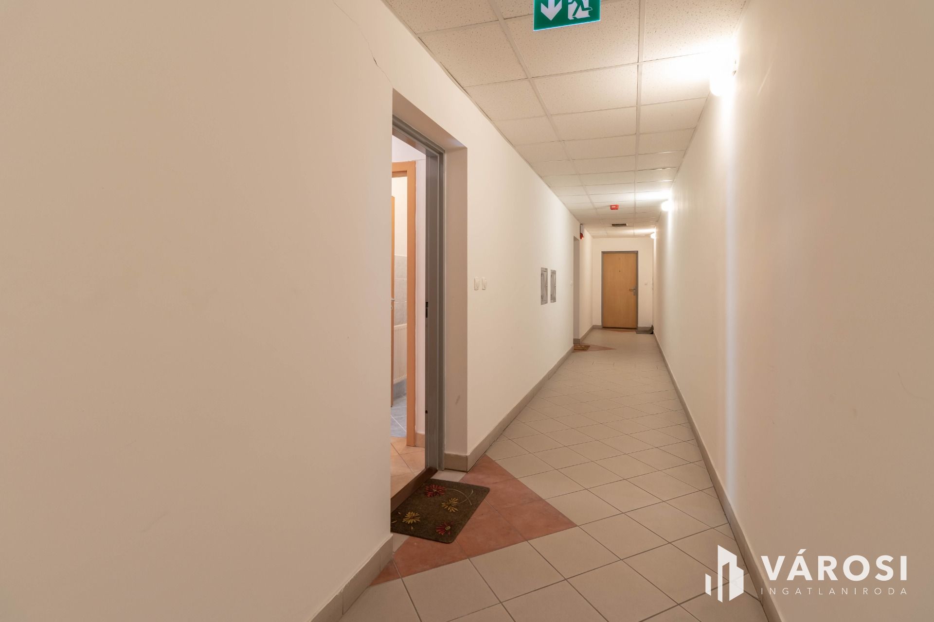 A lakás egy 2008-as, tégla építésű, modern, rendezett, csendes, tiszta és karbantartott, liftes, zárt lépcsőházú társasház földszintjén helyezkedik el.