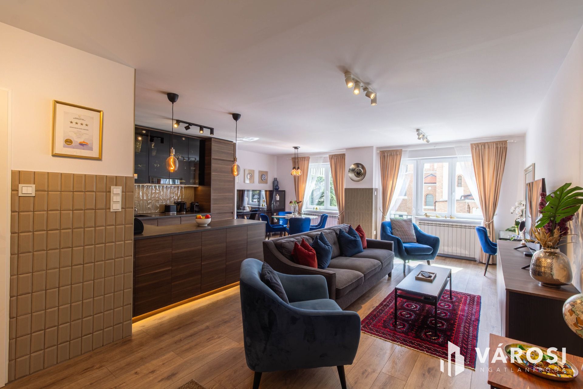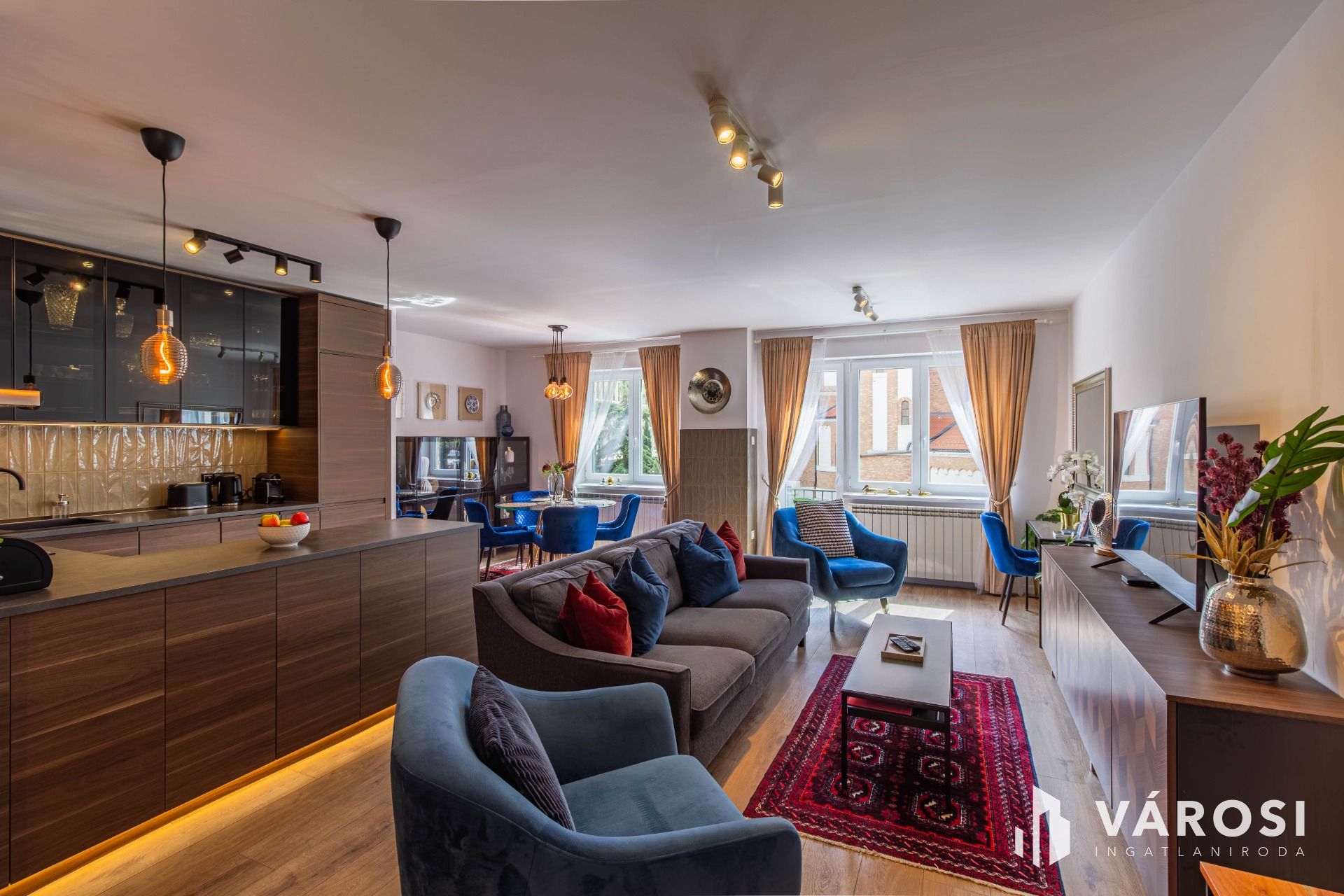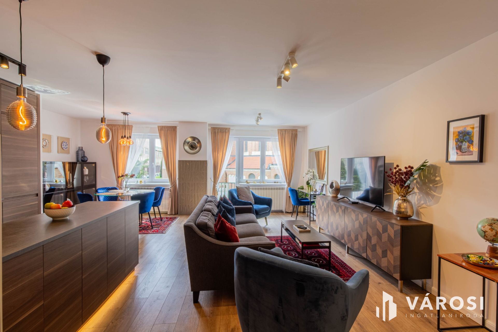 A lakás teljesen felszerelt és berendezéssel eladó a nyüzsgő belváros közvetlen közelében, mégis csendes és nyugodt a lakás, hála a minőségi nyílászáróknak! Páratlan minőségérzet és kényelem jellemzi a 71 m²-es, kiváló állapotú tégla lakást, amely ideális választás azok számára, akik modern kényelmet és stílust keresnek.