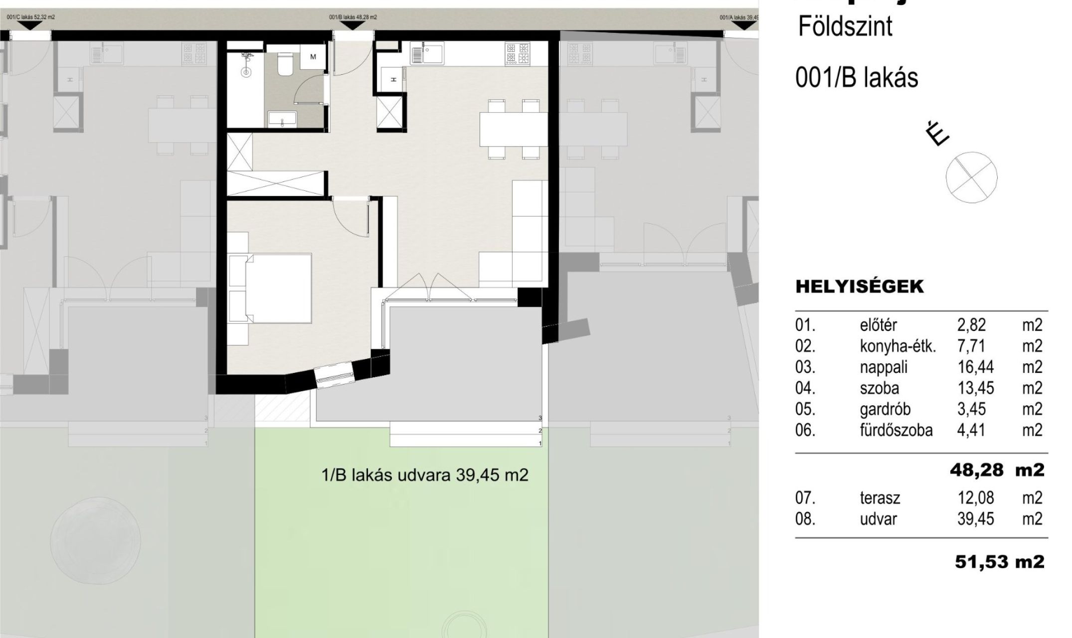 Ez a 48 m²-es földszinti lakás ideális választás mindazok számára, akik egy csendes, mégis központi helyet keresnek otthonuknak. Az épület három szintes, a lakás pedig kulcsrakész állapotban várja új tulajdonosát. A praktikus elrendezés egy szobát, egy nappalit és egy amerikai konyhát és gardróbot foglal magában, a fürdőszoba pedig modern kialakítású.