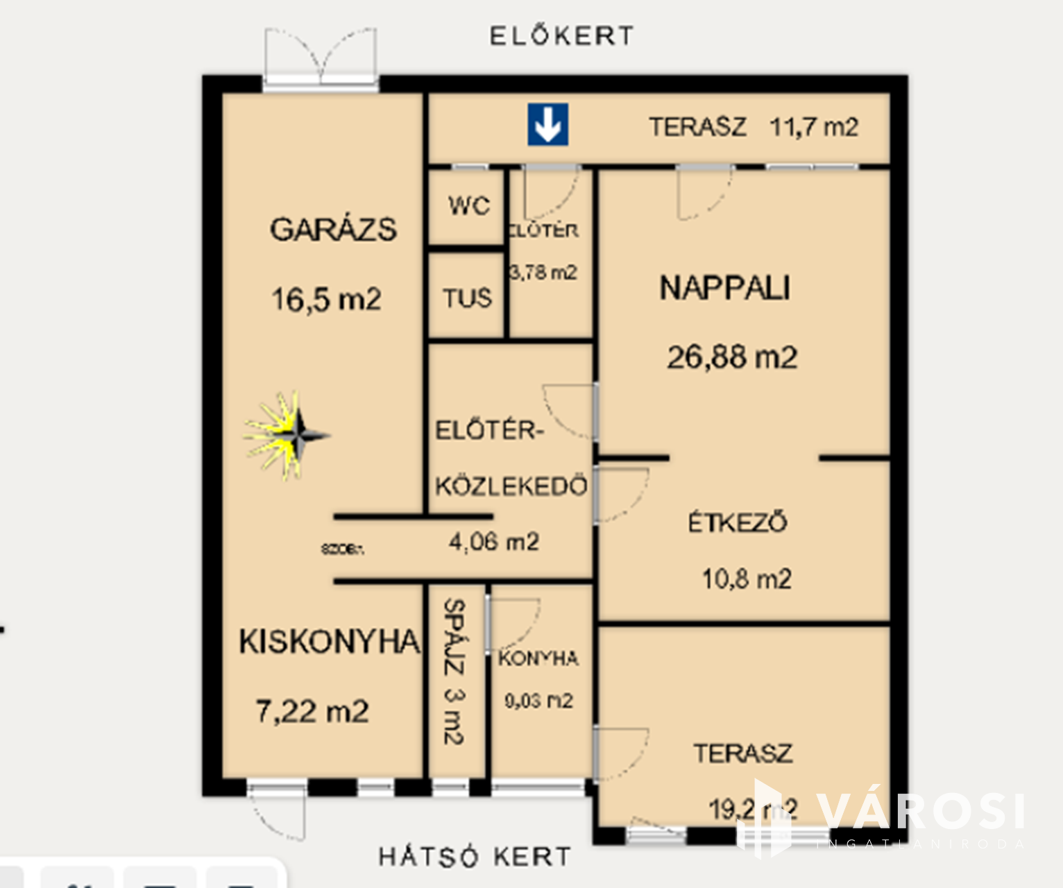 A ház alsó szintjében található a 25 m2-es garázs és 20 m2-es kiskonyha.