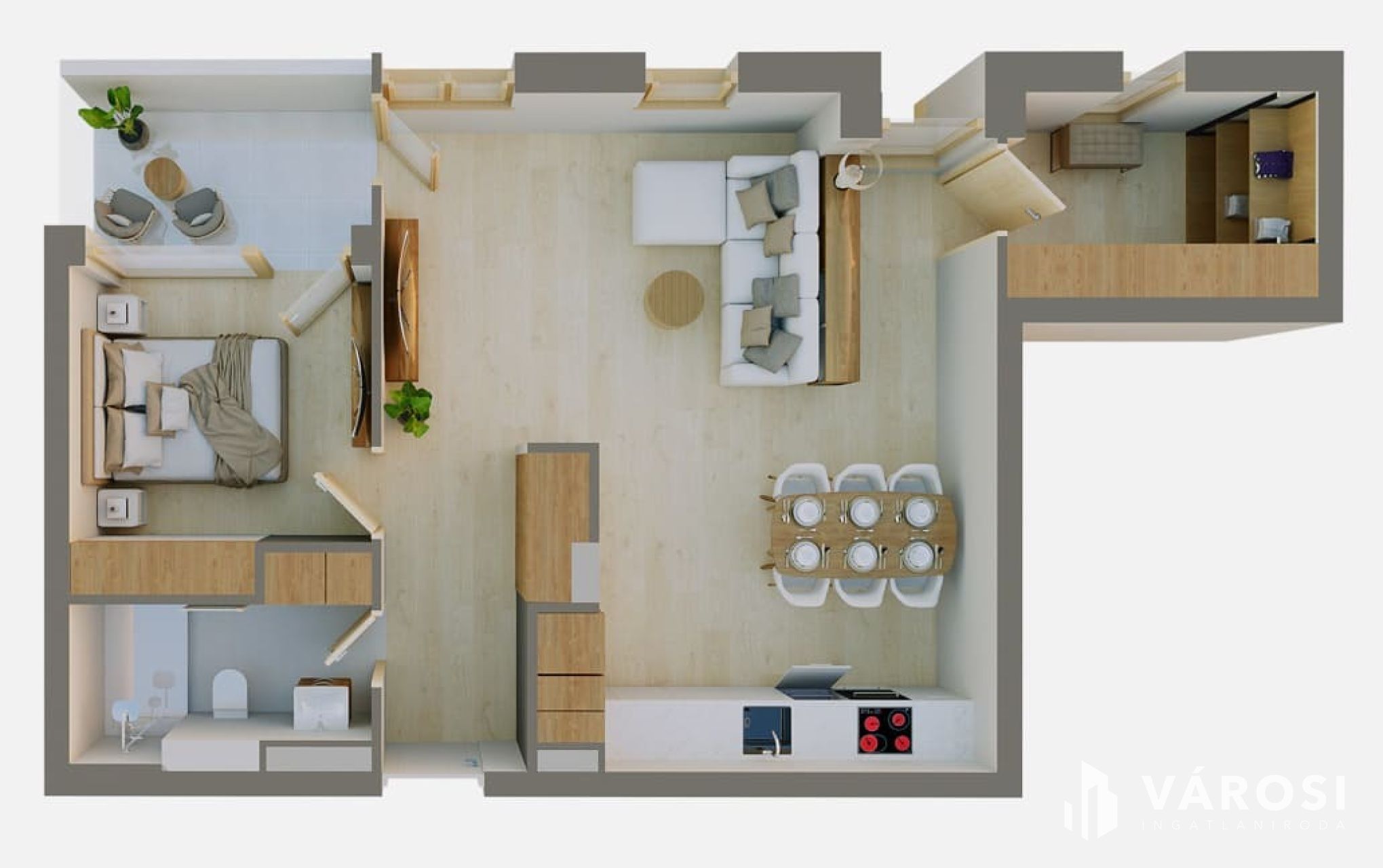 - Modern kialakítás: praktikusan tervezett terek, világos helyiségek – ideális egyedülállóknak, pároknak vagy kis családnak