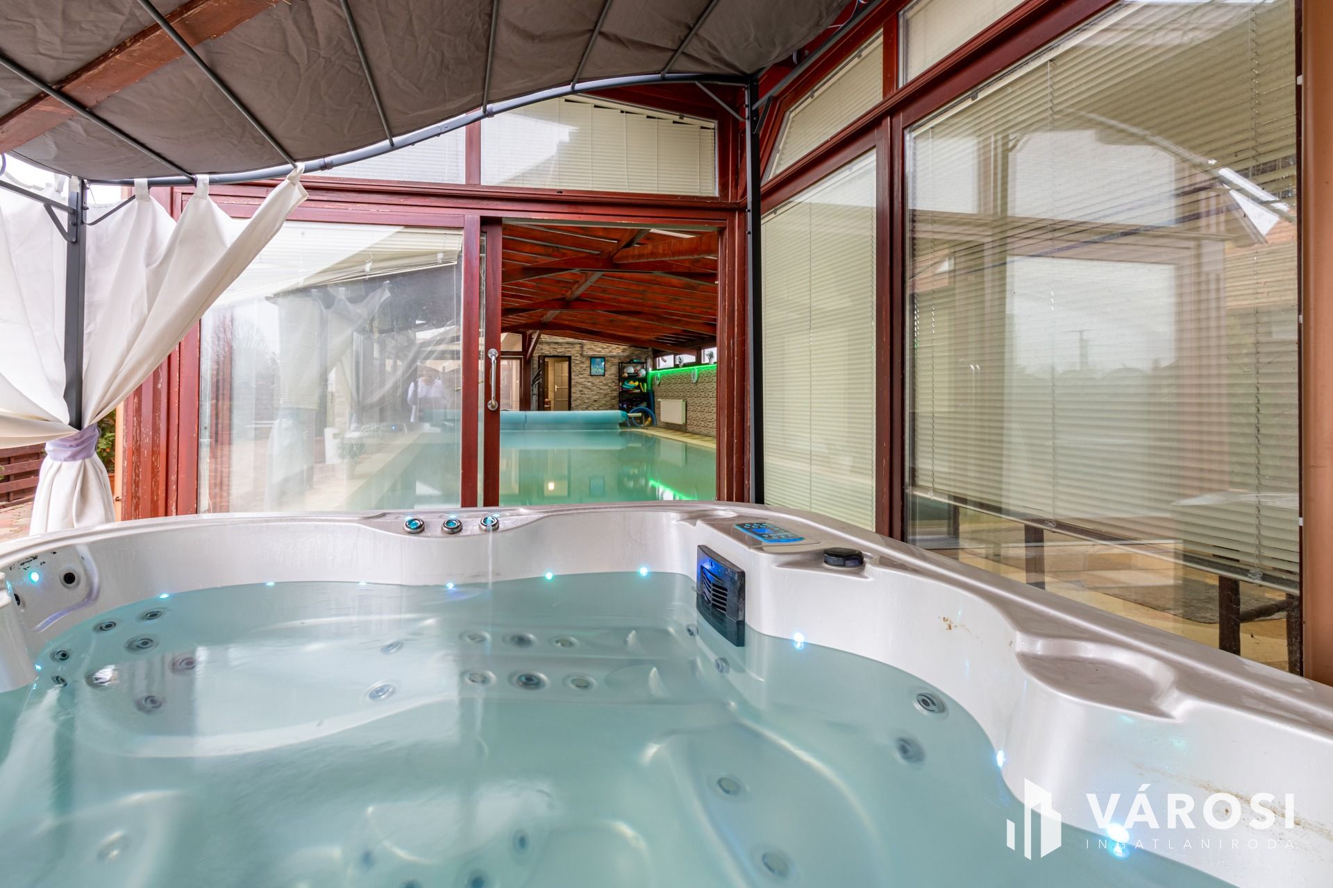 Kiadó a képeken látható családi ház hosszú távra, medence, jacuzzi, szauna és szolárium használattal. A wellness részleg közös használatú a szomszédban lakó tulajdonossal.